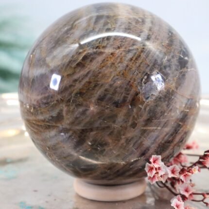 Große Schwarze Mondstein Edelsteinkugel mit wunderbarem Farbspiel