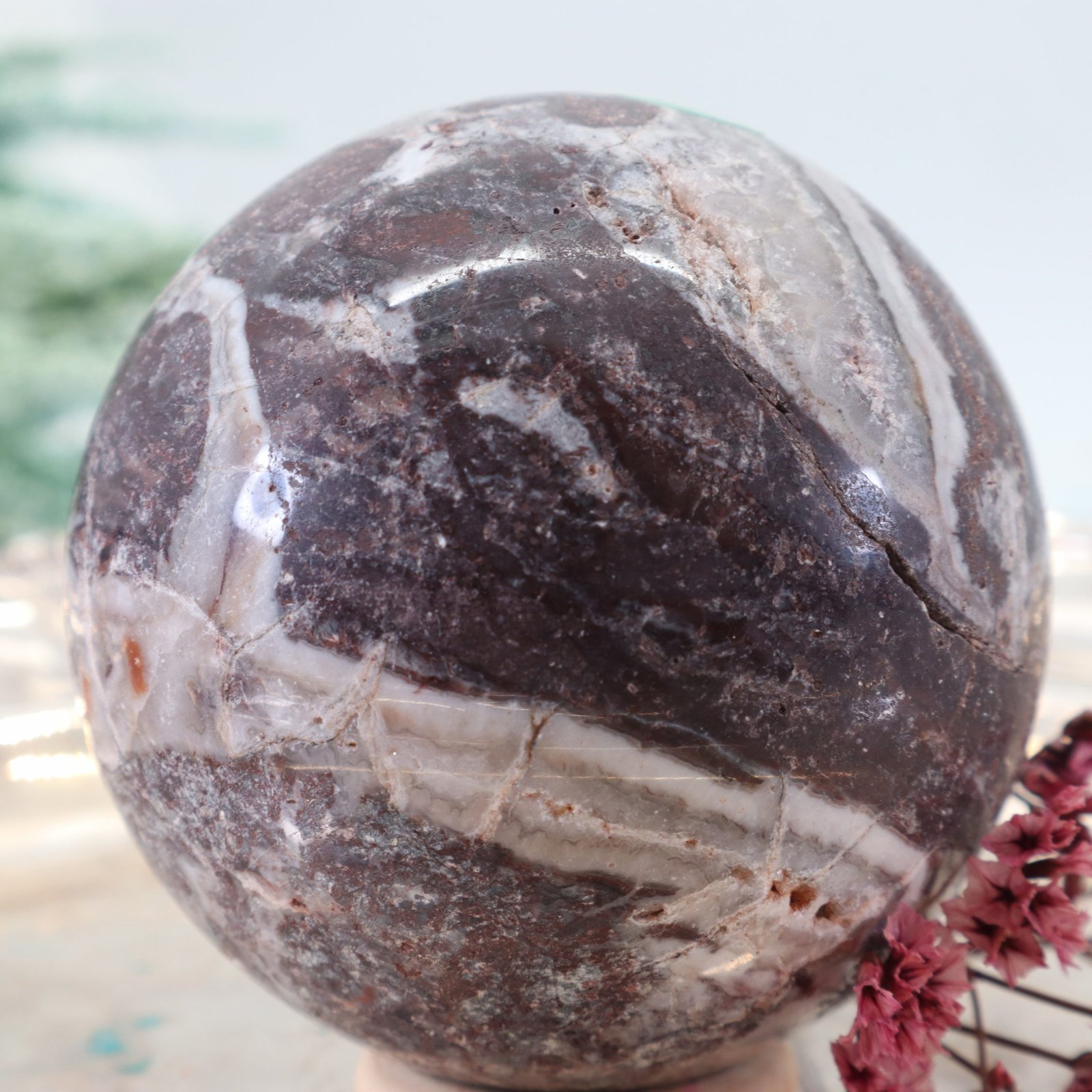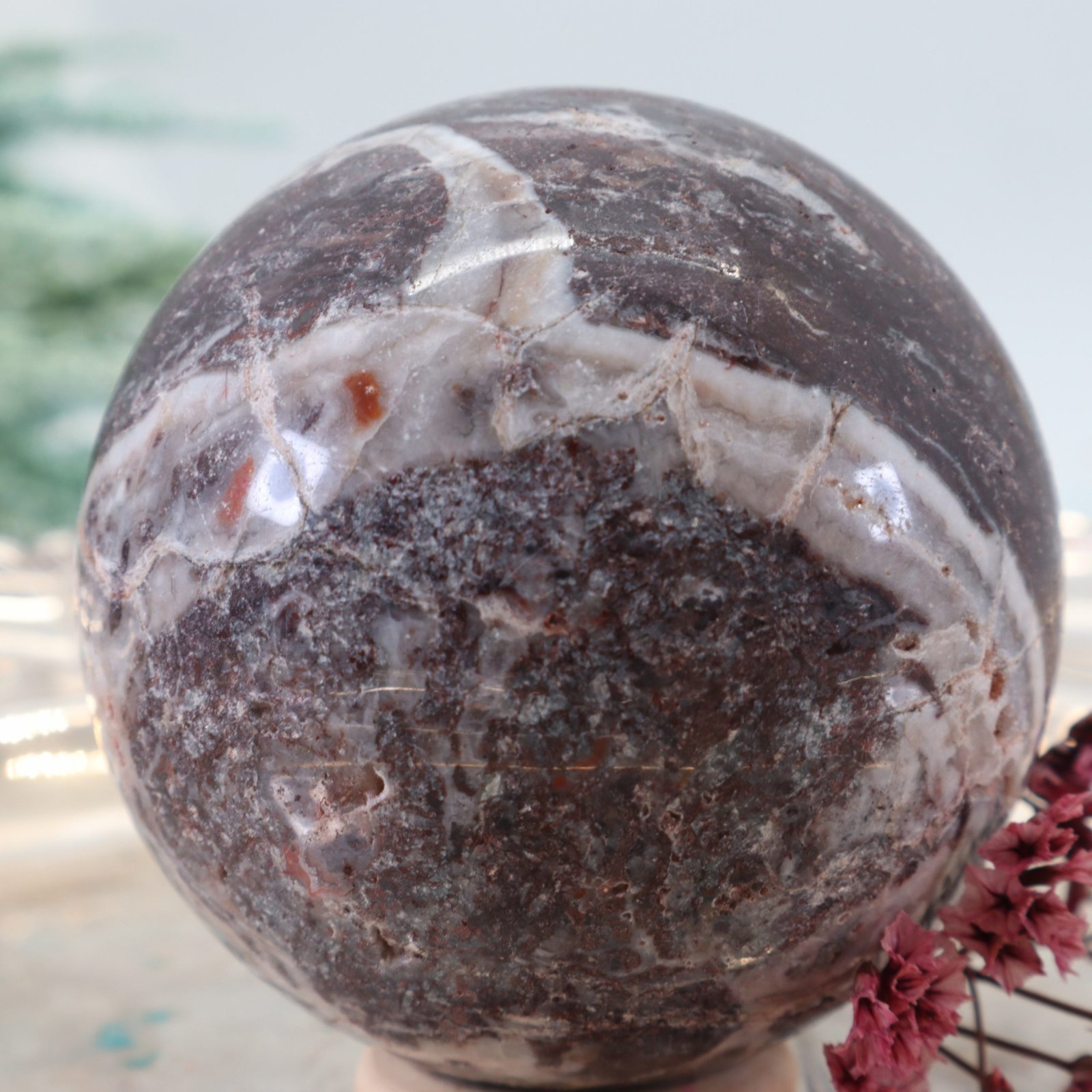 Große Rote Cordierit Edelsteinkugel, seltenes Fundstück, schöne Struktur, 83 mm