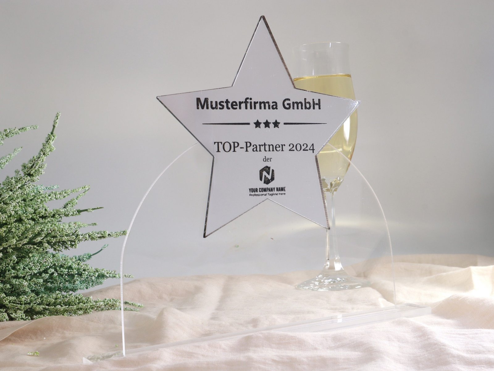 Acrylglas Trophäe Award mit Stern, personalisierter eigener Text oder Logo