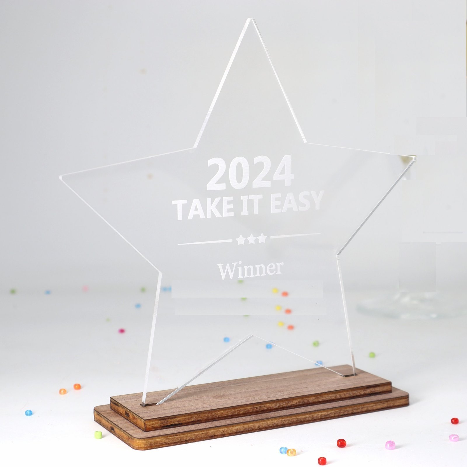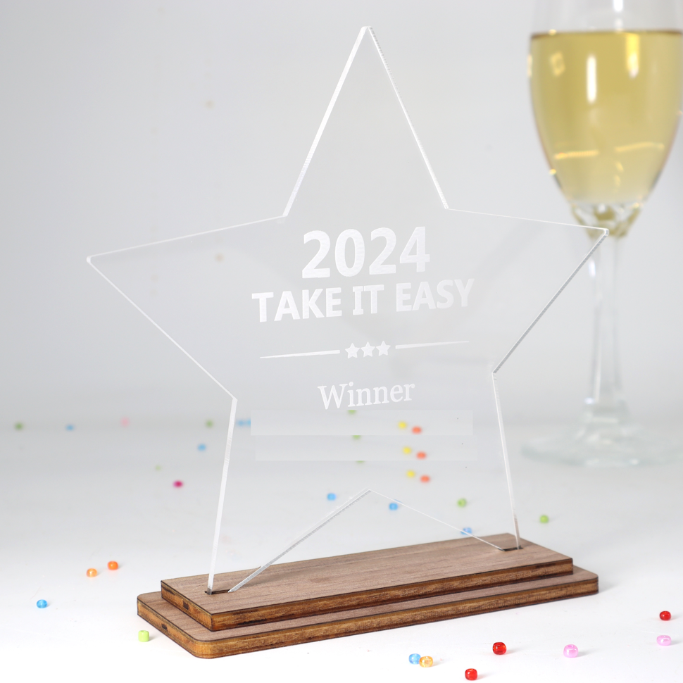 Stern Trophäe aus Acryl, personalisierter eigener Text oder Logo