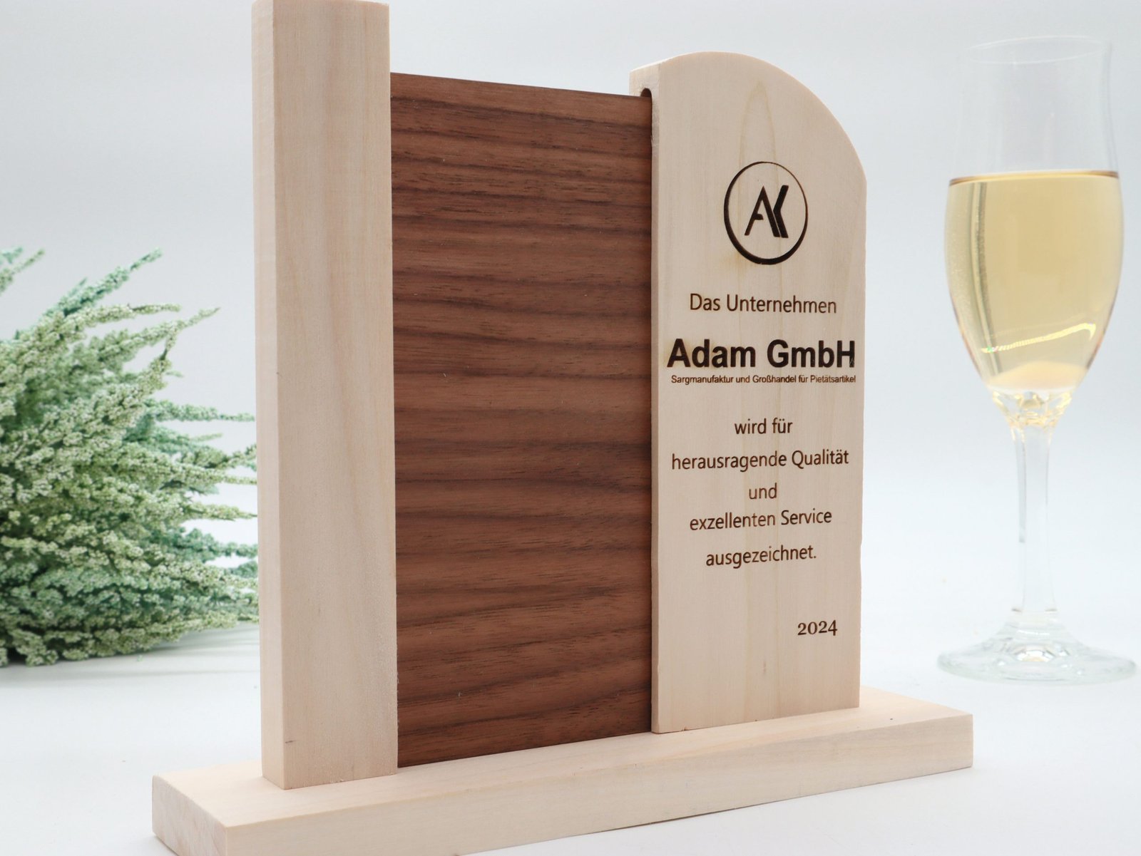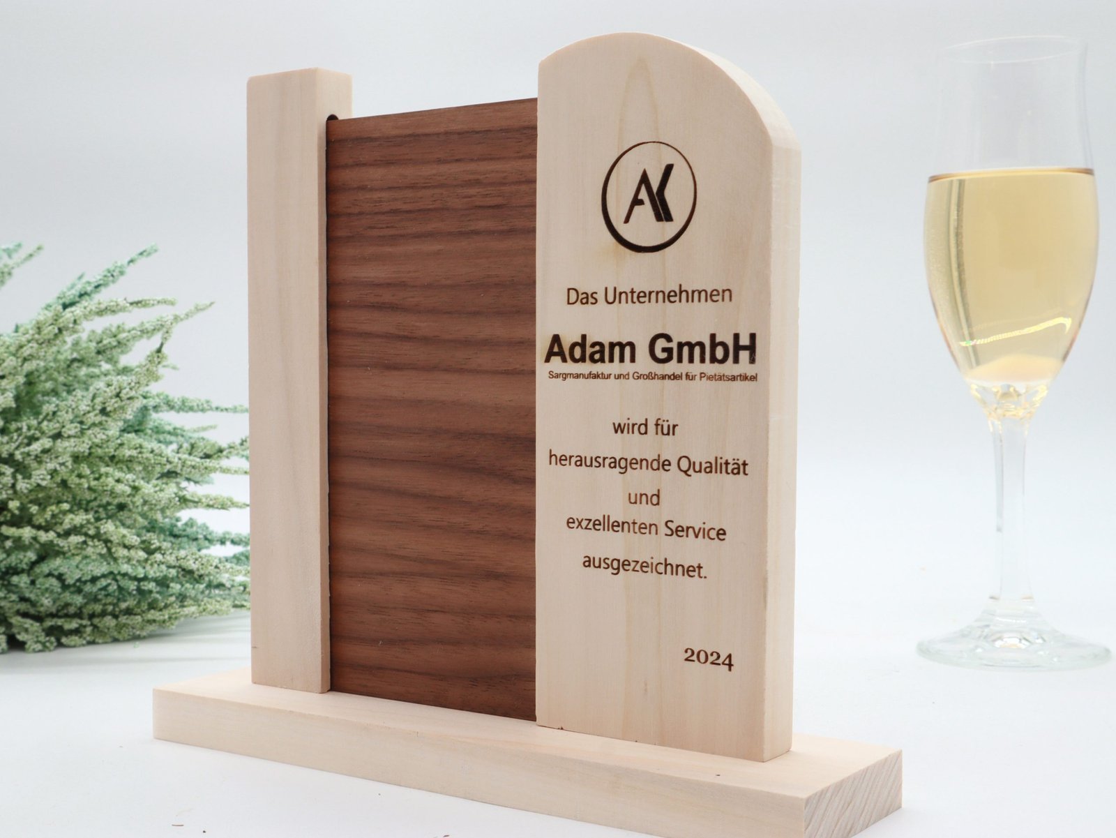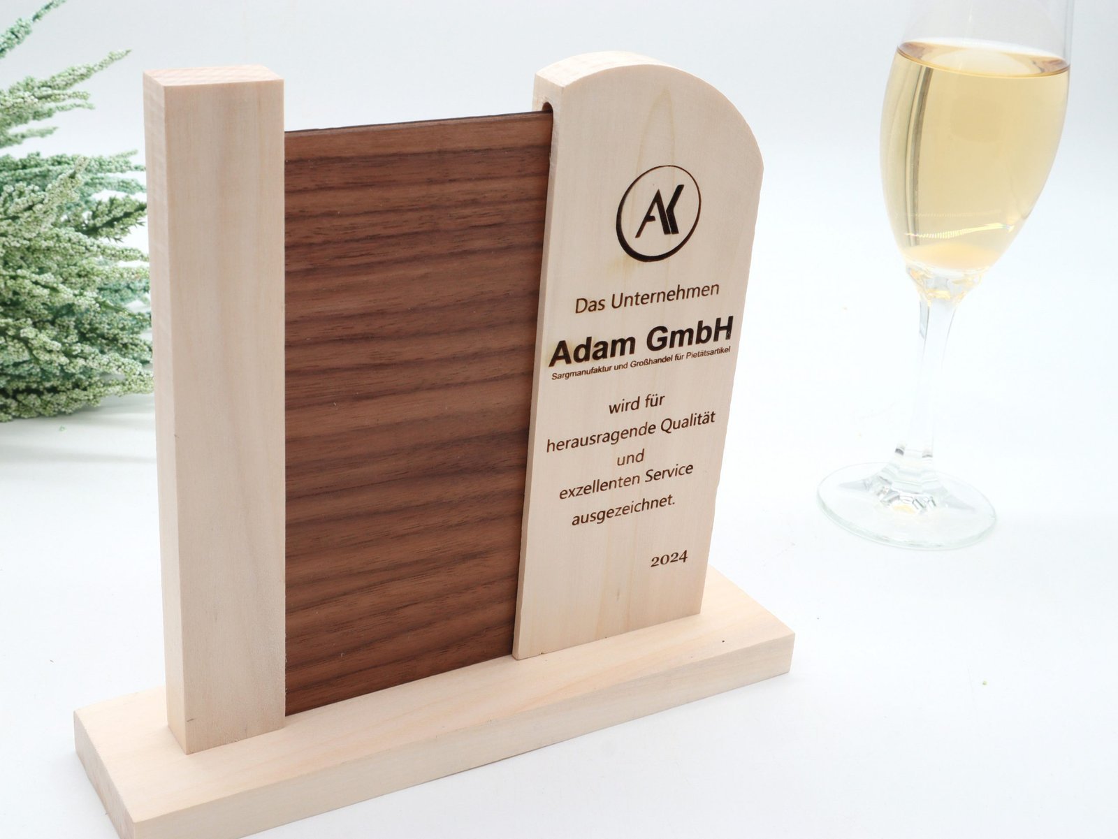 Entdecken Sie den besonderen Award aus hochwertigem dunklem Nussbaum und hellem Pappelholz – eine perfekte Kombination aus Eleganz und Natürlichkeit. Dieser handgefertigte Award ist mehr als nur eine Trophäe: Er erzählt Ihre Geschichte.