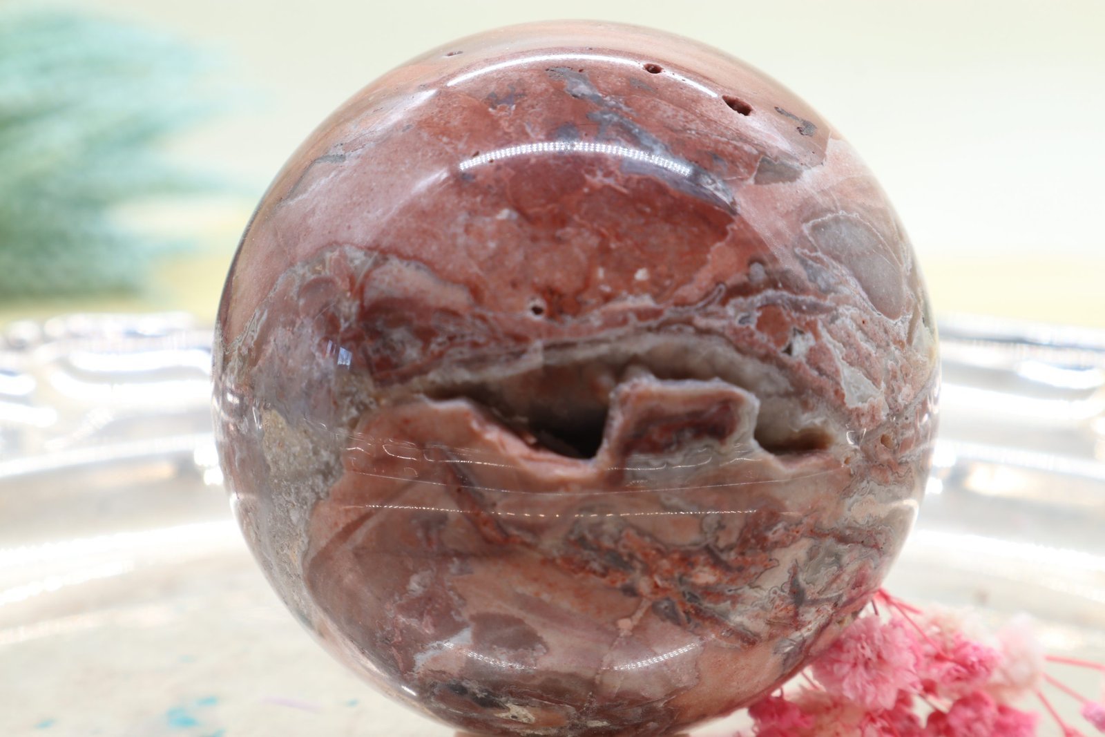 Die natürlichen Muster auf der Oberfläche erinnern an wirbelnde Strudel, organische Linien und manchmal sogar an abstrakte Gemälde. Diese natürliche Schönheit macht jede Kugel zu einem Kunstwerk der Natur, das die Fantasie anregt und bewundert wird.