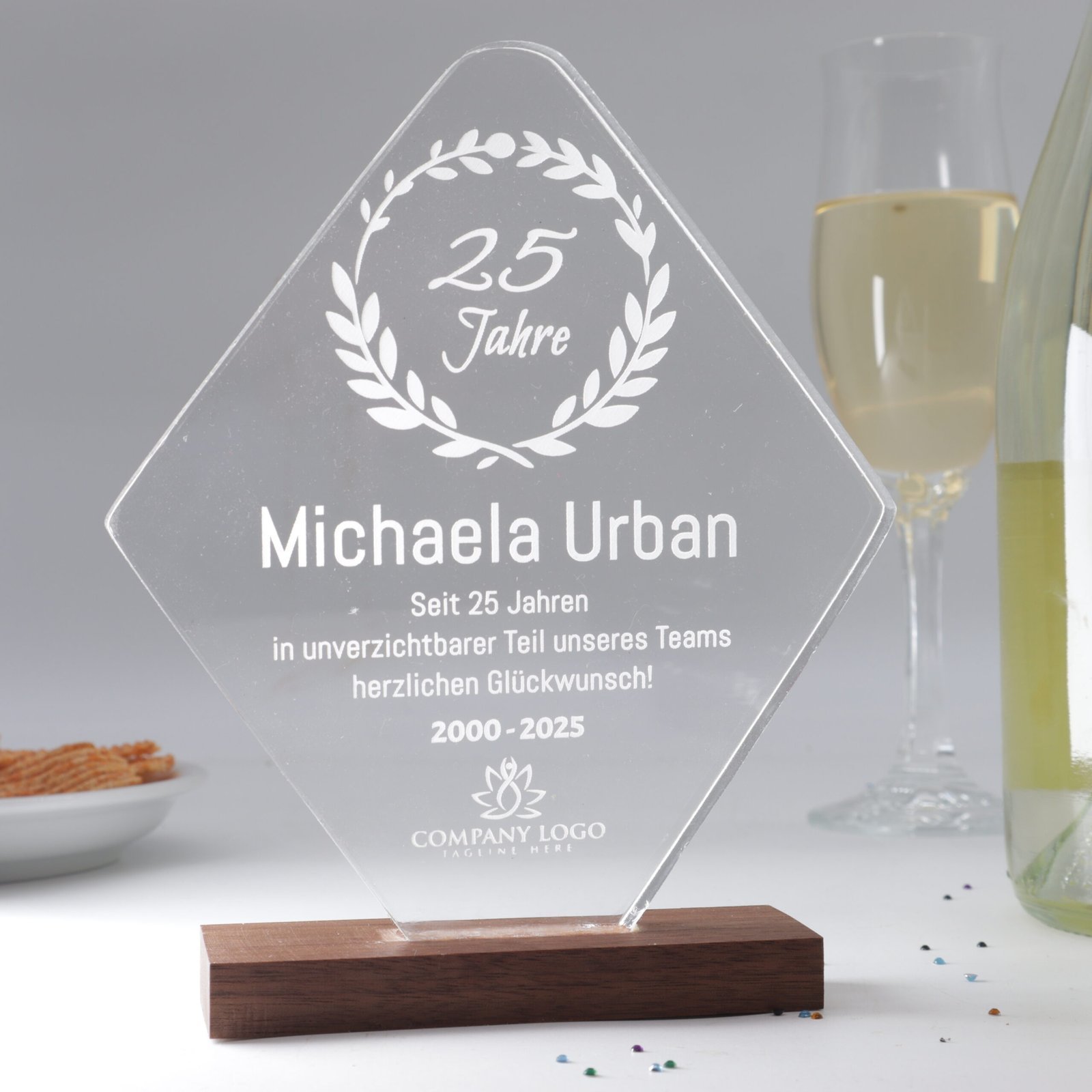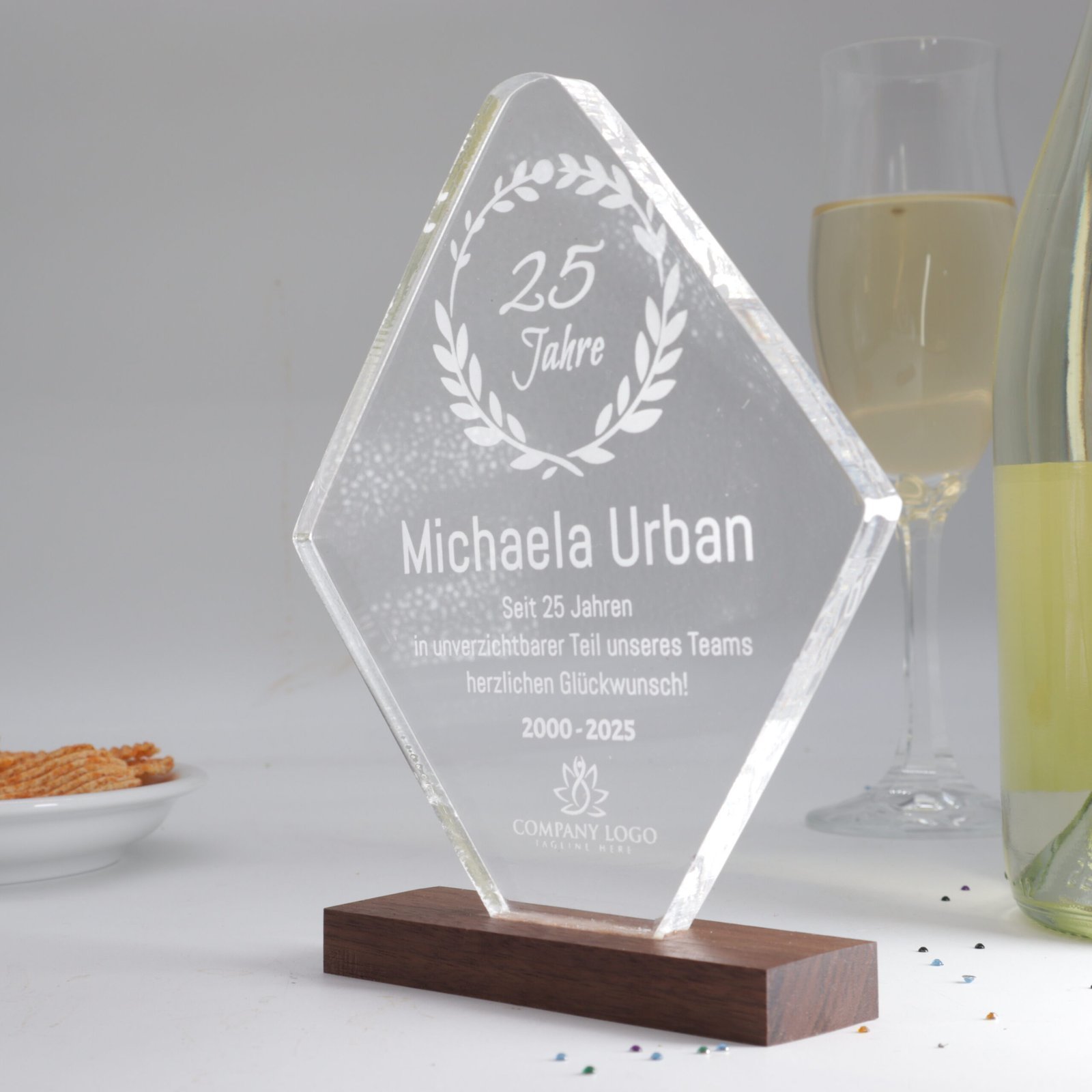 🏆 Exklusiver Acrylglas-Award mit Gravur & Nussbaum-Sockel – personalisierbar