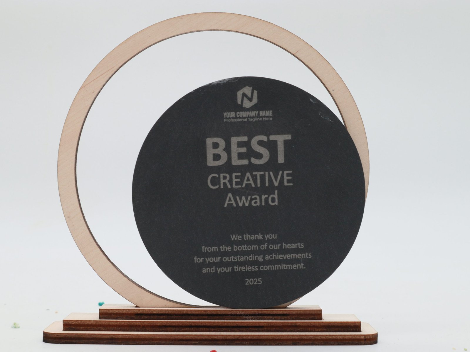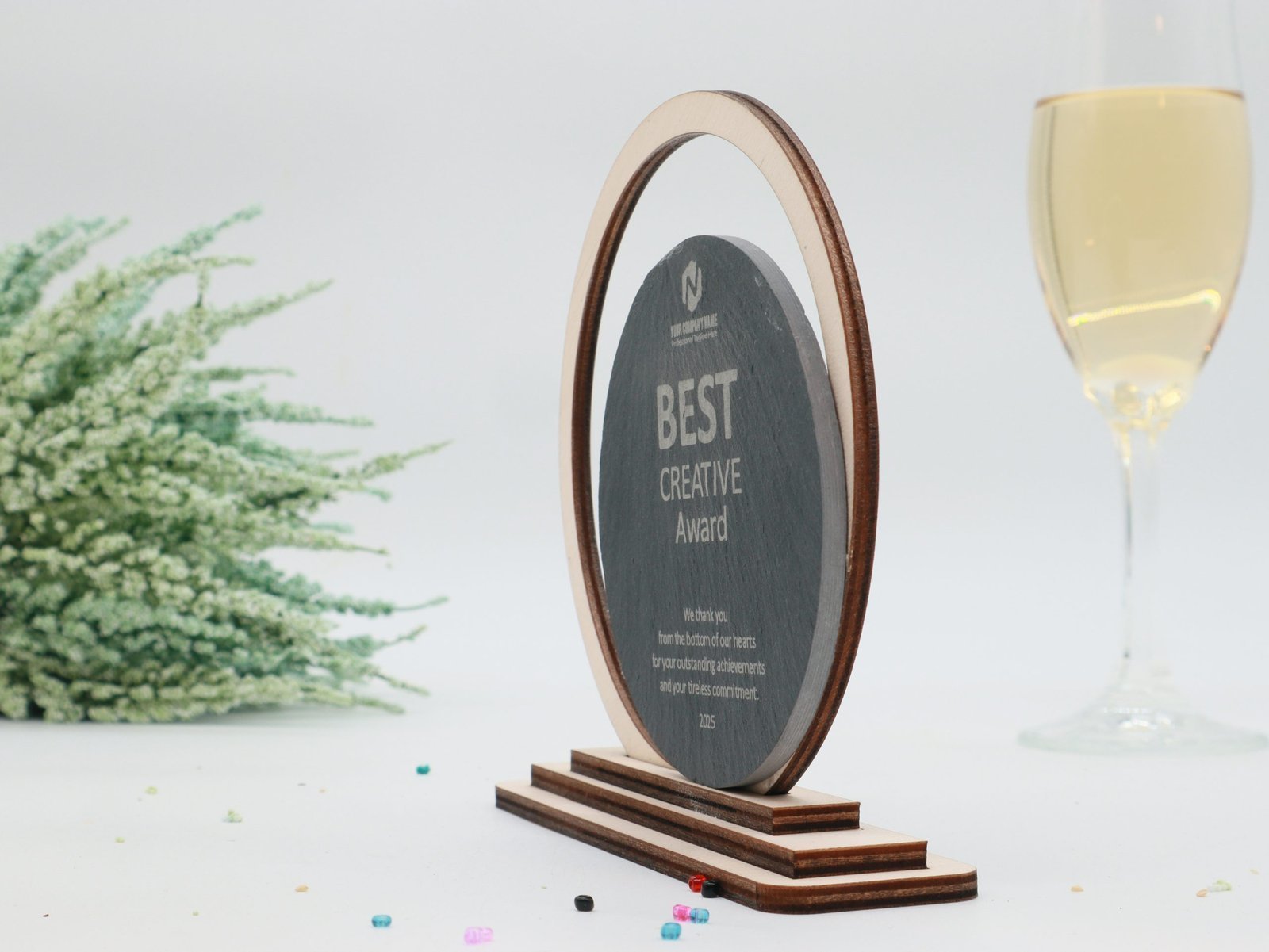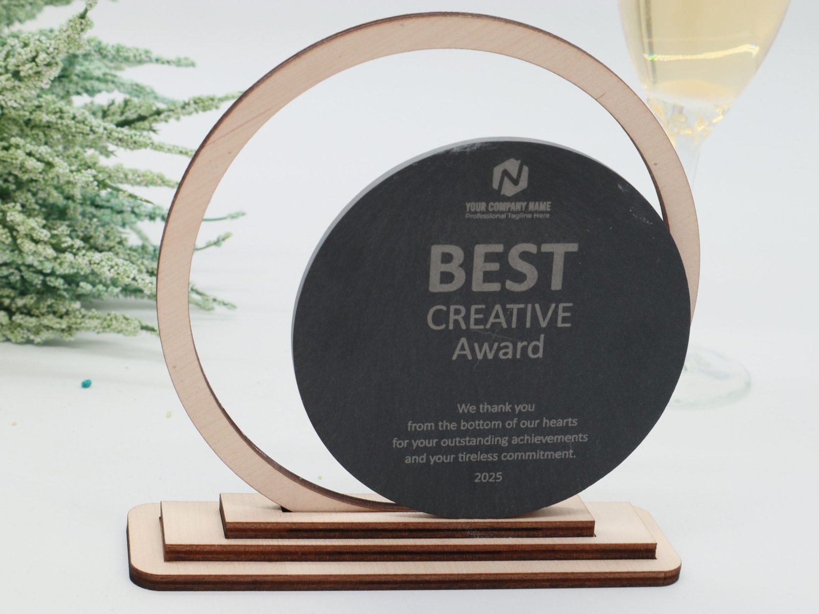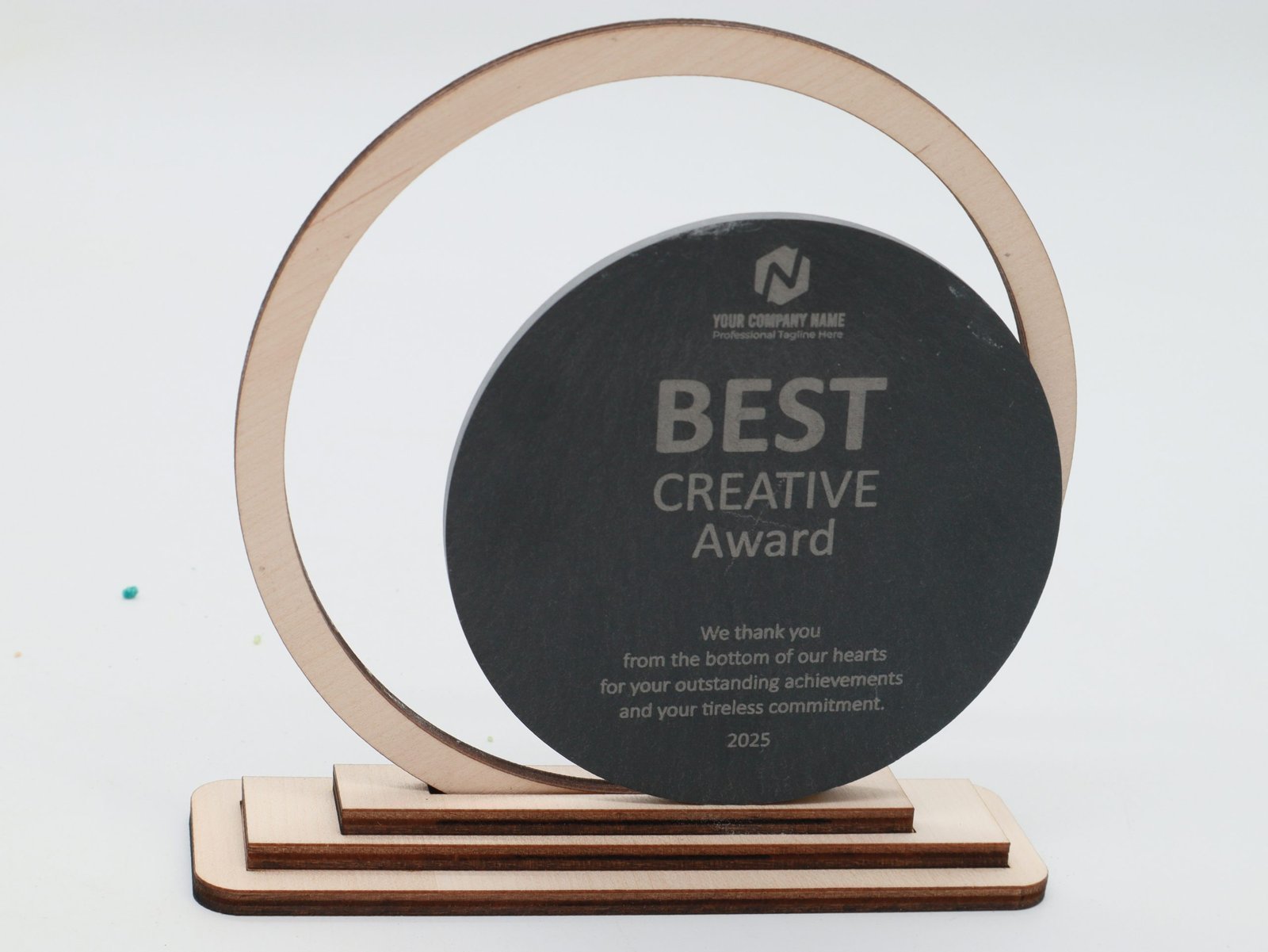 Entdecken Sie unsere einzigartige Trophäe aus edlem Ahornholz und einer stilvollen Schieferplatte, die speziell für Sie graviert wird. Ideal für Auszeichnungen, Ehrungen und besondere Anlässe – gestalten Sie Ihren Award ganz nach Ihren Wünschen!