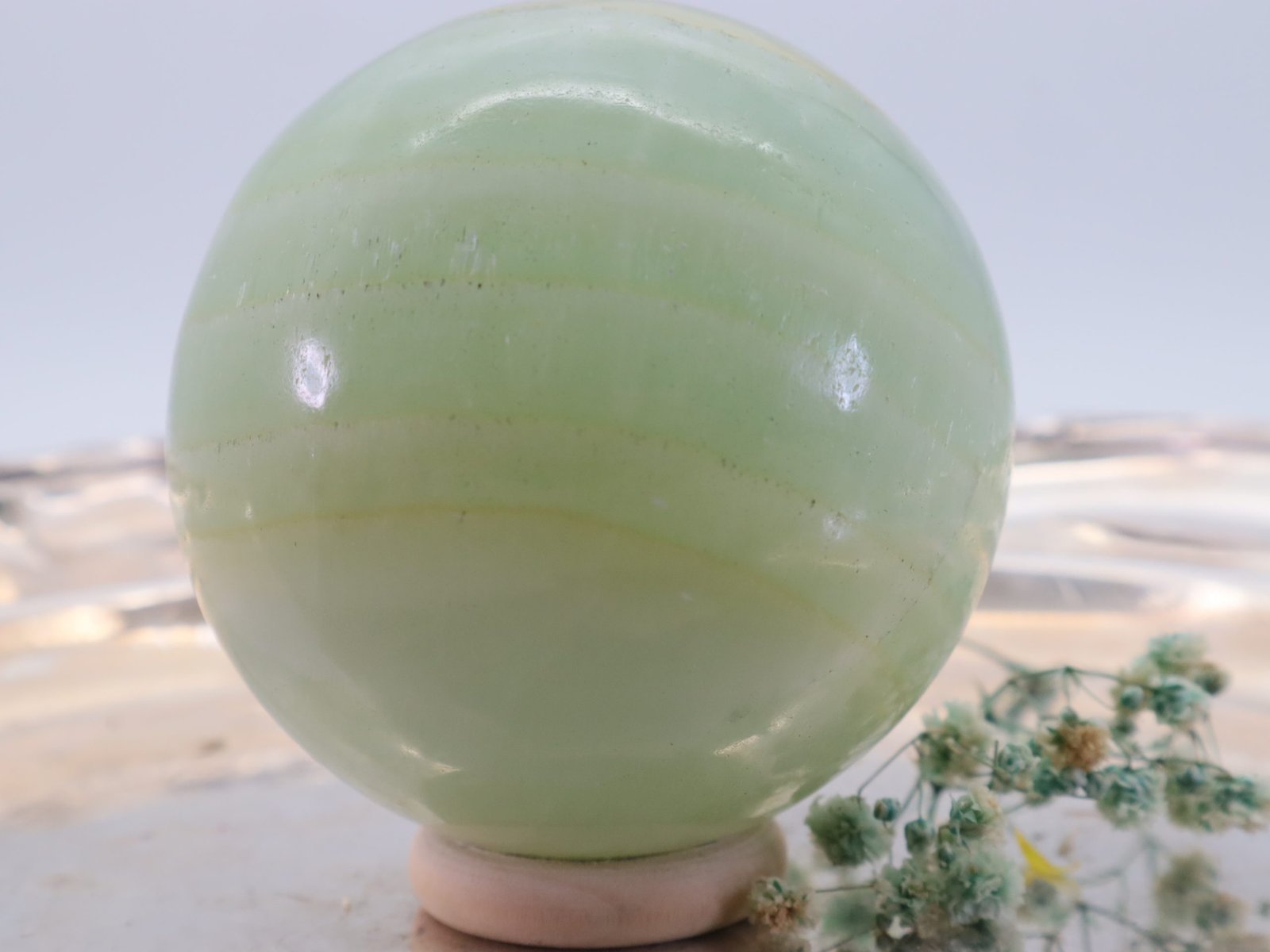 Insgesamt ist die grün gebänderte Calcit-Edelsteinkugel ein kraftvolles Werkzeug für Heilung, Transformation und spirituelles Wachstum.