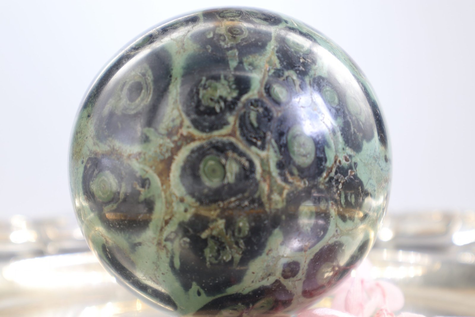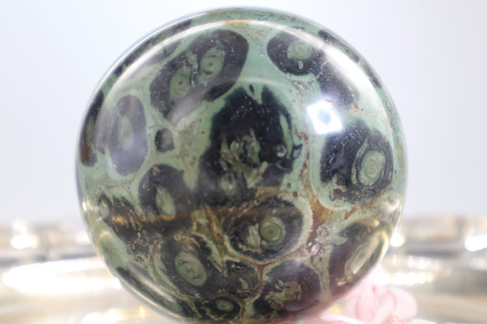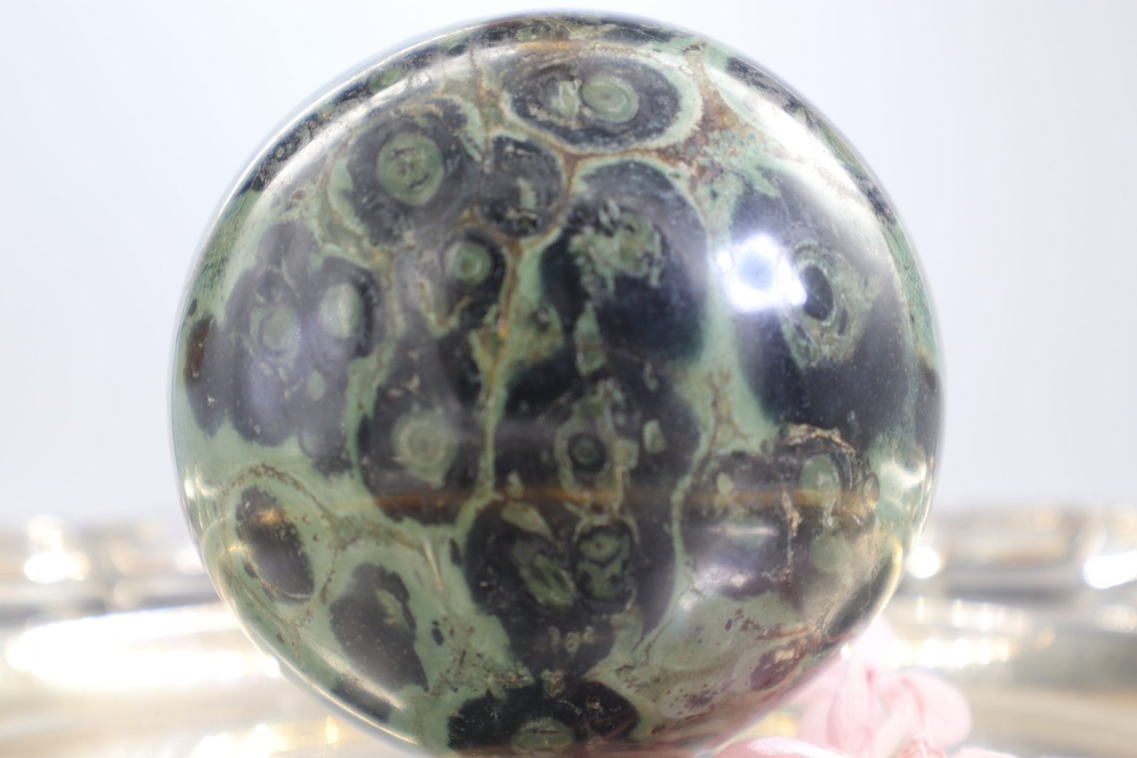 – Kambaba Jaspis ist ein sehr beruhigender Stein. Viele Indianer Kulturen betrachten Kambaba Stein als Symbol für das Blut der Erde und dieser Kugelstein ist voller