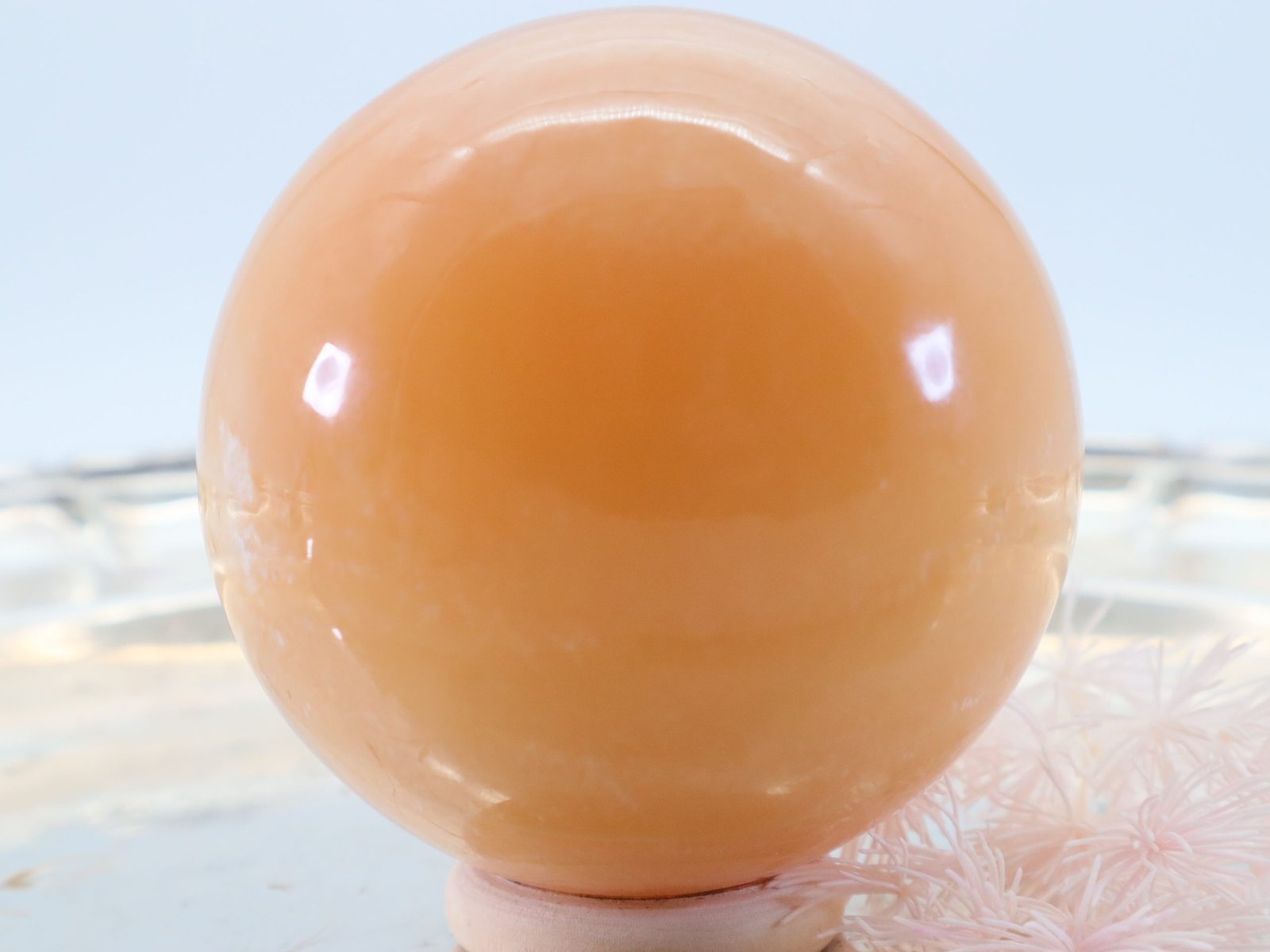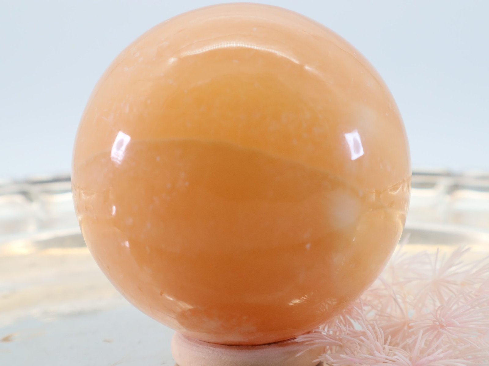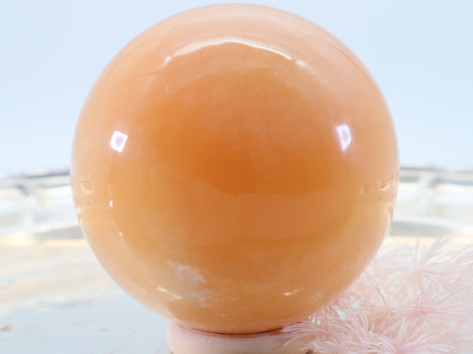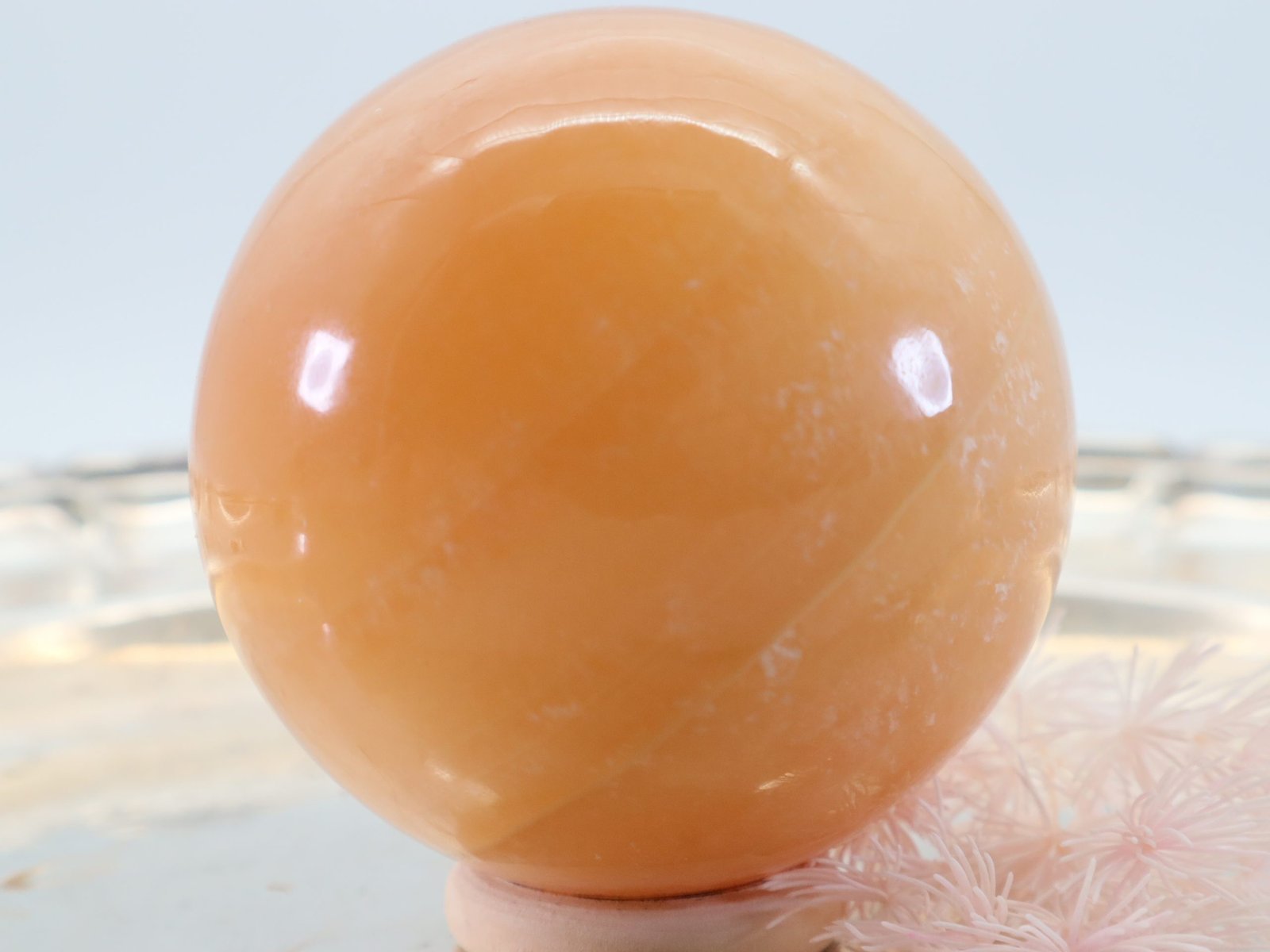 Diese Edelsteinkugel aus Orangen Calcit ist eine beeindruckende und kraftvolle Ergänzung für jede Sammlung von Heilsteinen. Sie werden oft für ihre heilenden Eigenschaften geschätzt und in verschiedenen esoterischen Praktiken eingesetzt.