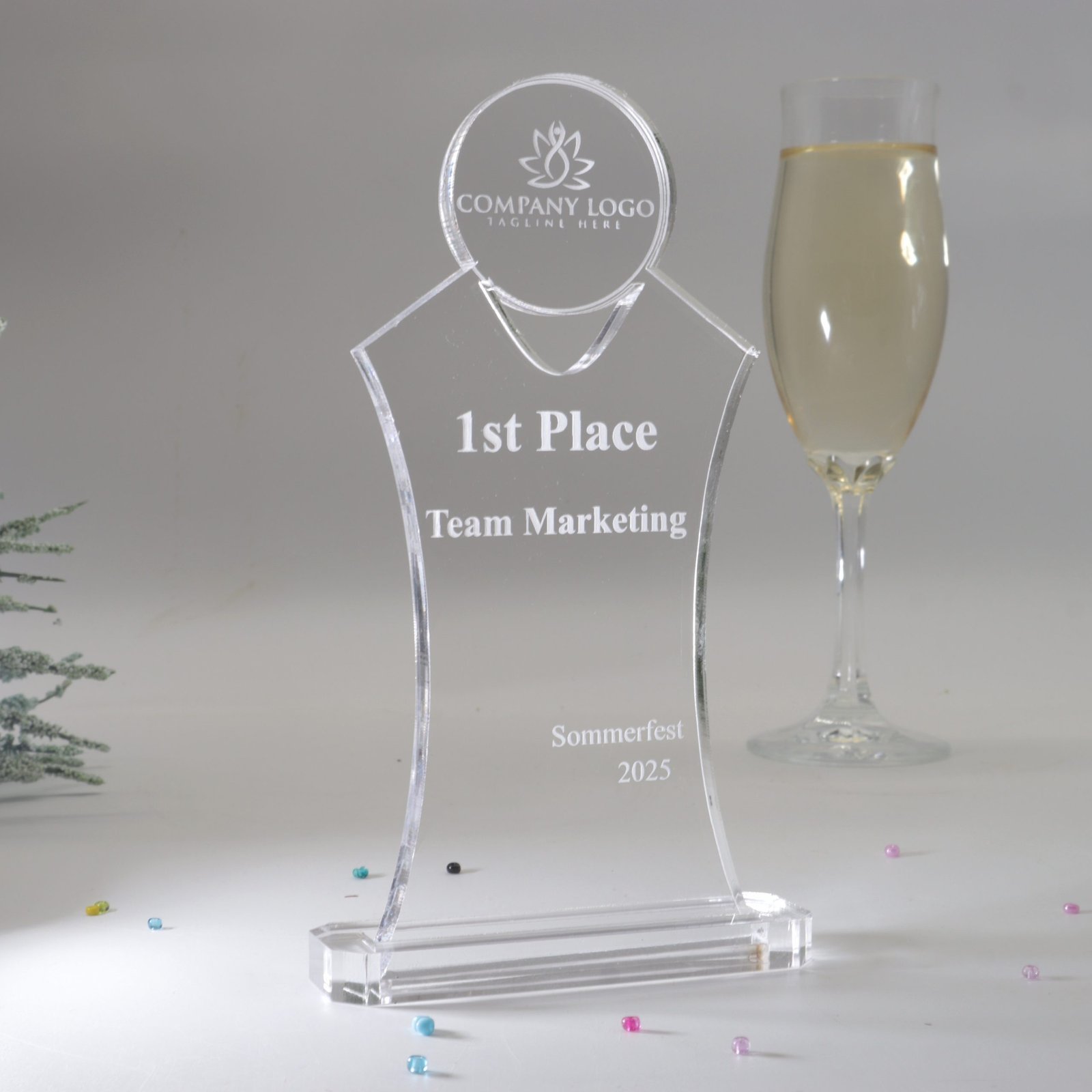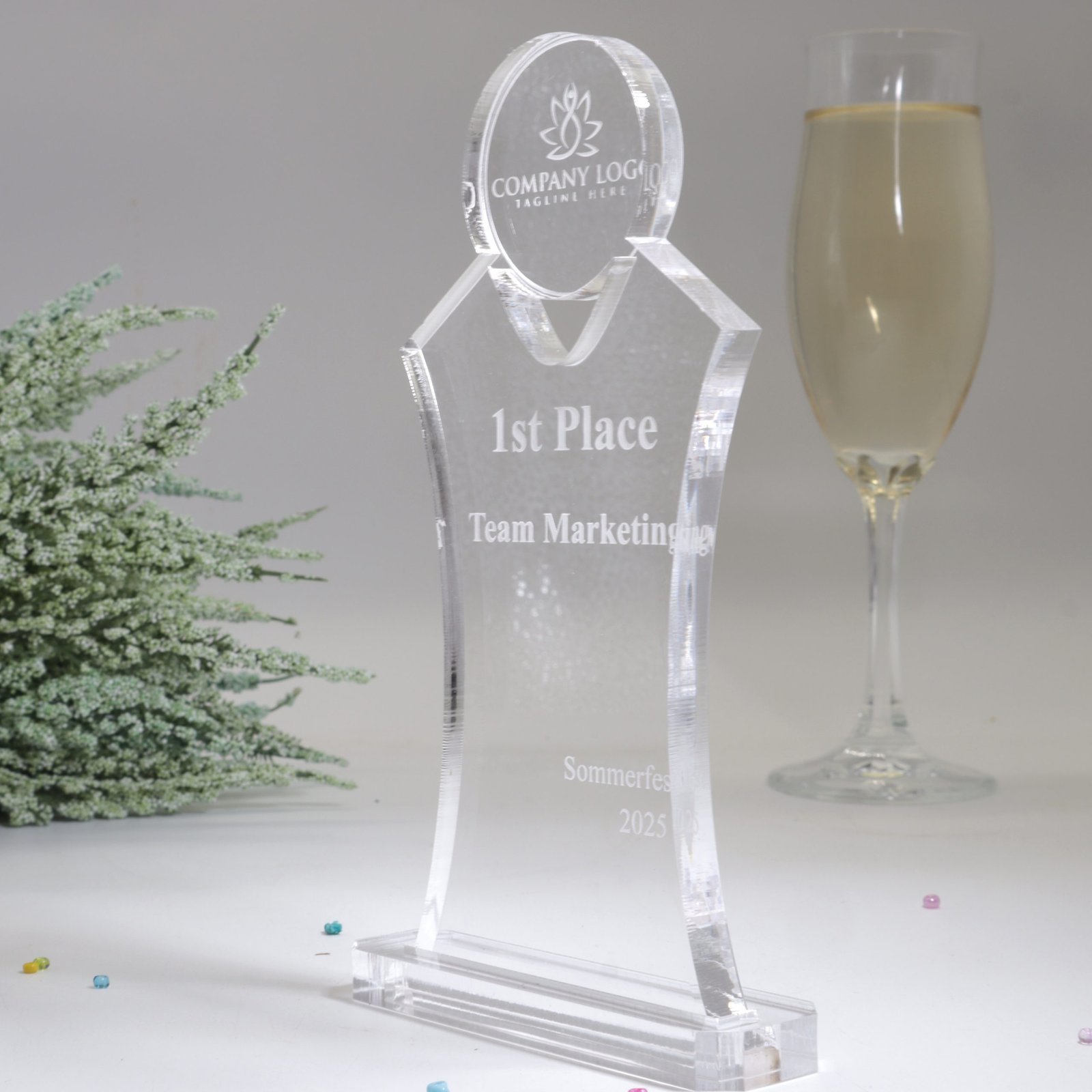 Der Clou: Unser Kristall-Acrylglas Pokal kann individuell nach Ihren Wünschen gestaltet werden. Ob Firmenlogo, persönlicher Text oder ein einzigartiges Design – die Personalisierungsmöglichkeiten sind nahezu unbegrenzt. Dadurch wird der Pokal nicht nur zu einem stilvollen Geschenk, sondern auch zu einer bleibenden Erinnerung an besondere Erfolge und Momente.
