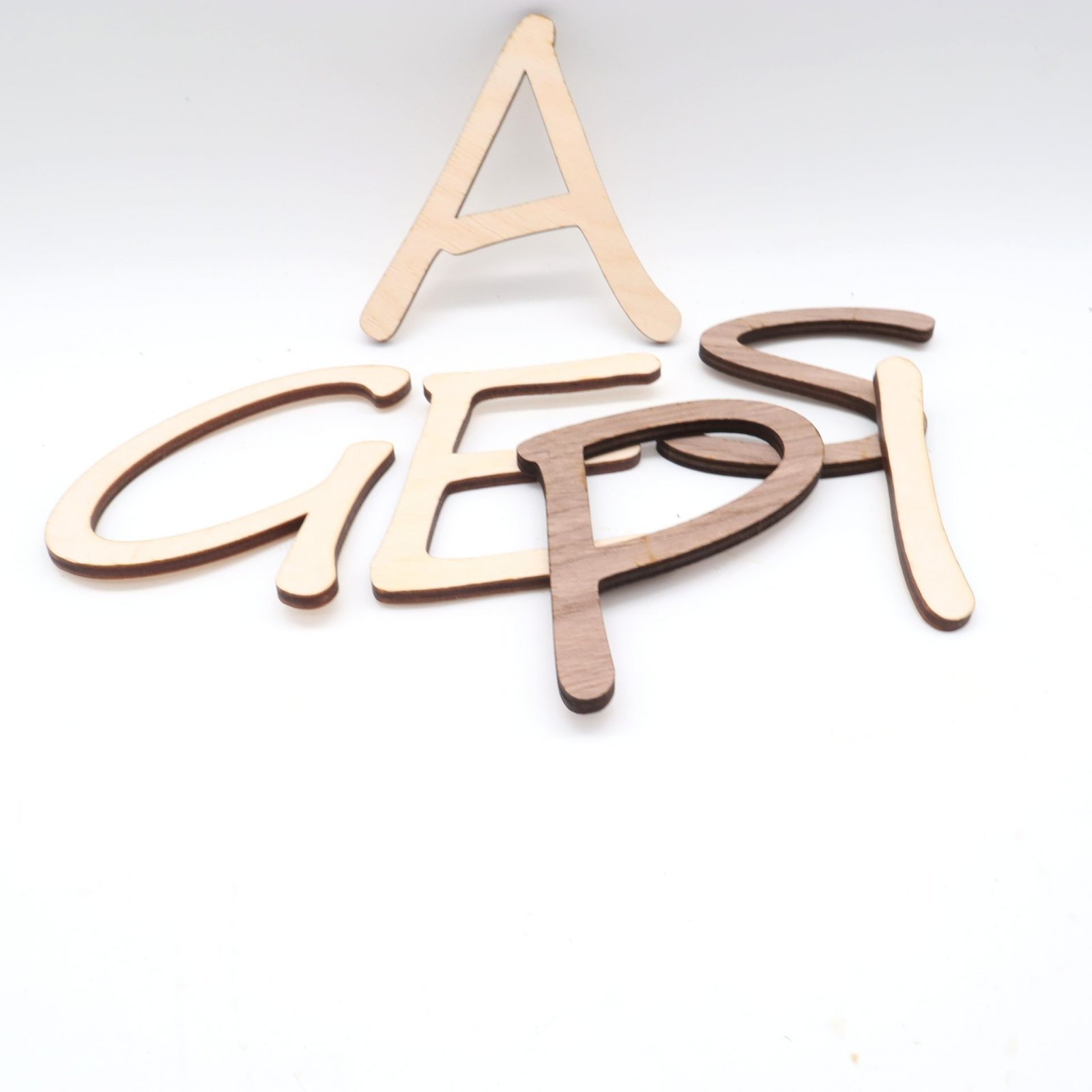 Die lasergeschnittenen Holz-Buchstaben aus naturbelassenen Nussbaum- oder Ahornsperrholz sind einfach wunderschön!