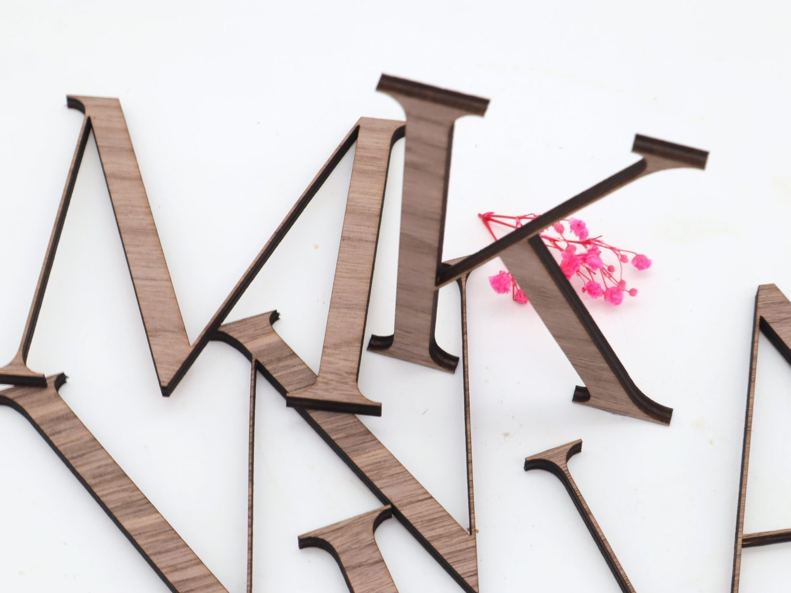 Die lasergeschnittenen Holz-Buchstaben aus naturbelassenen Nussbaum- oder Ahornsperrholz sind einfach wunderschön!