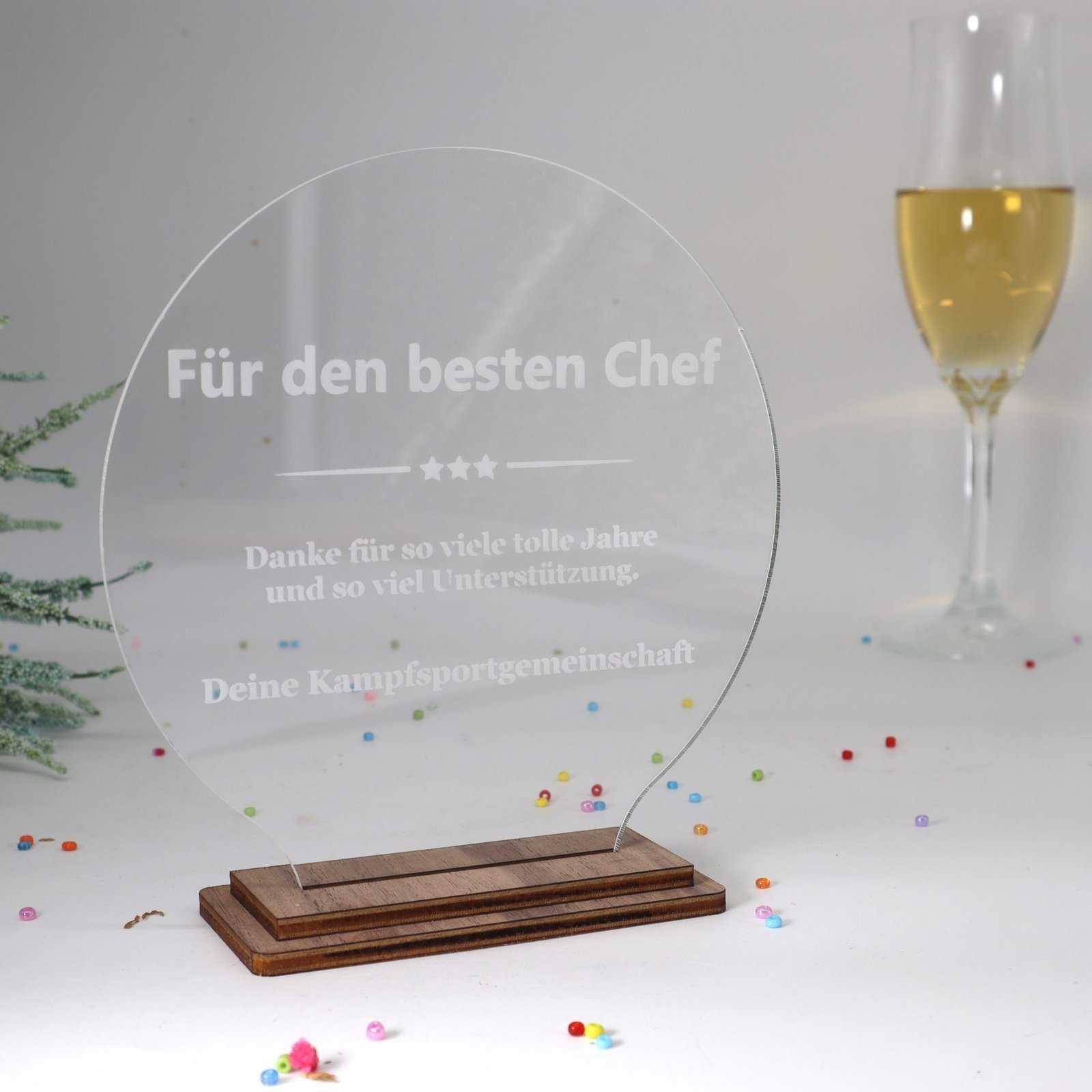 Moderne edle Sport Trophäe, eigener Text Logo, farbiges und klarem Acryl – Personalisierte Gravur – Pokal – Auszeichnung – Elegante Ehrungen