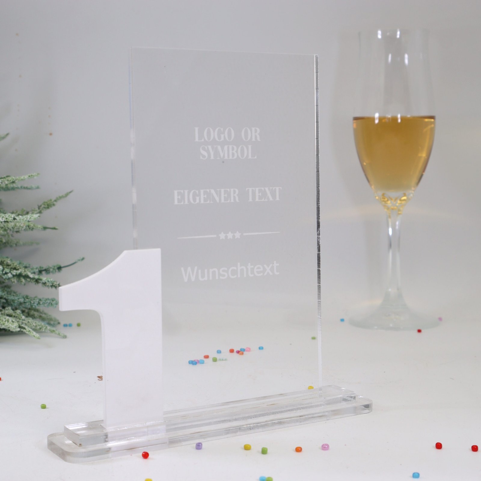 Moderne edle Sport Trophäe, eigener Text Logo, farbiges und klarem Acryl – Personalisierte Gravur – Pokal – Auszeichnung – Elegante Ehrungen