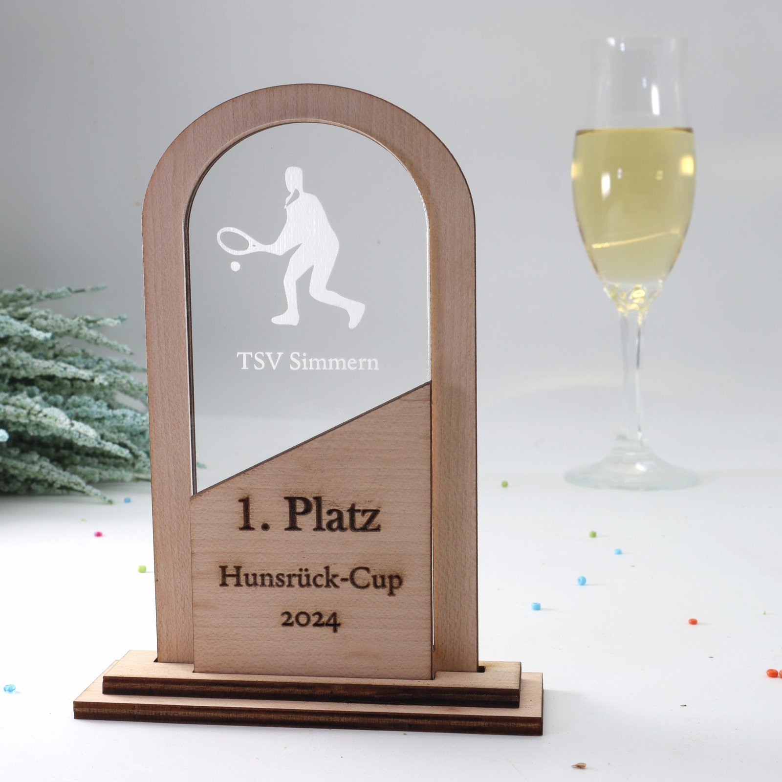 Moderne edle Sport Trophäe, eigener Text Logo, Ahorn und Acryl – Personalisierte Gravur – Pokal – Auszeichnung – Elegante Ehrungen
