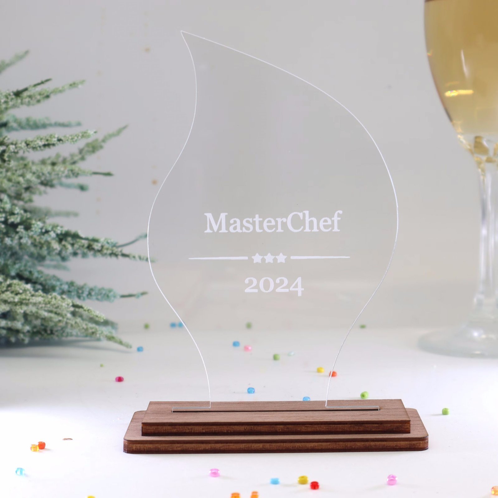Die Trophäe verkörpert das Höchstmaß an Exzellenz und Raffinesse. Diese Trophäe ist eine harmonische Fusion aus erstklassigem Nussbaum Holz und transparentem Acryl, die nicht nur die Gewinner ehrt, sondern auch ein zeitloses Symbol für Erfolg und Durchsetzungsvermögen darstellt.