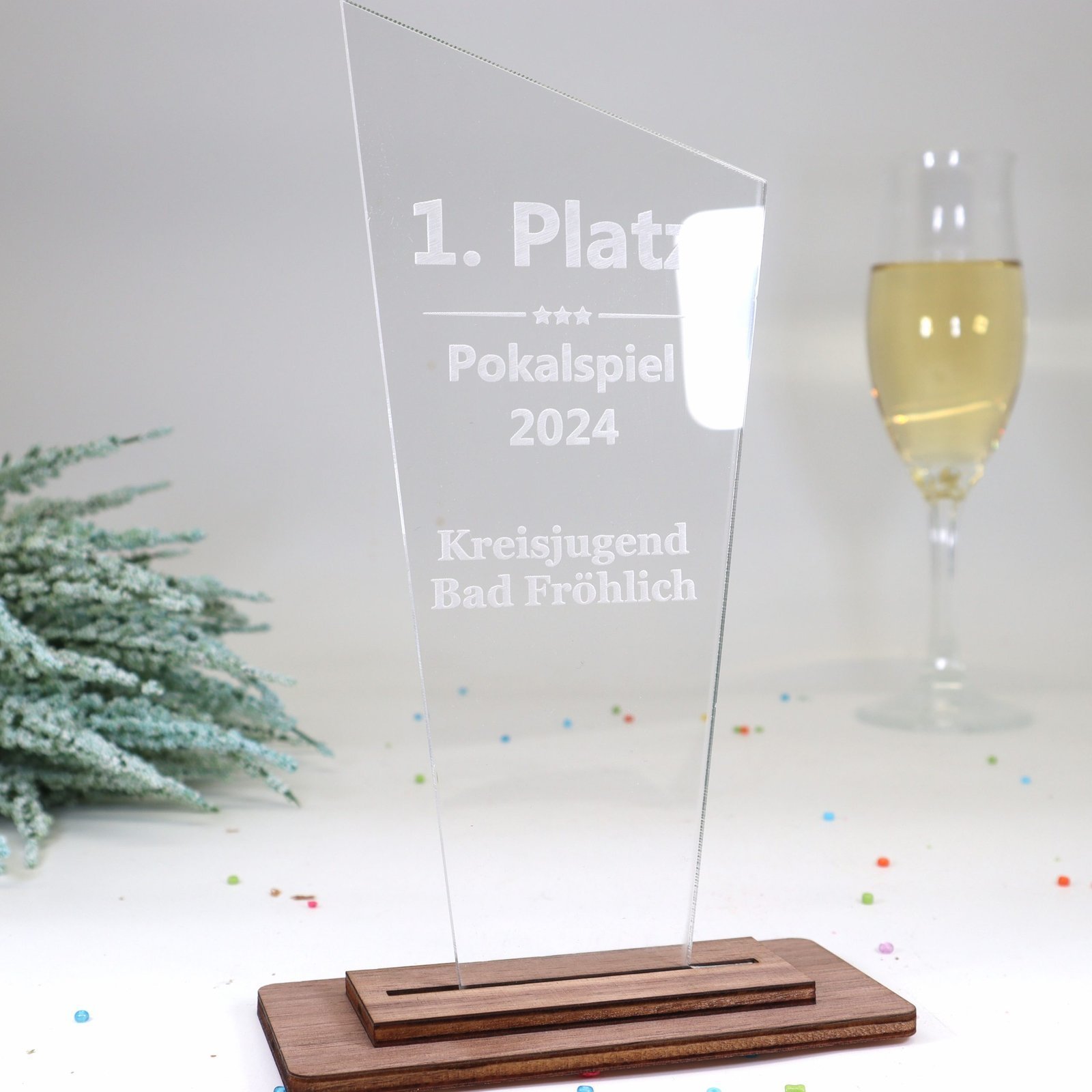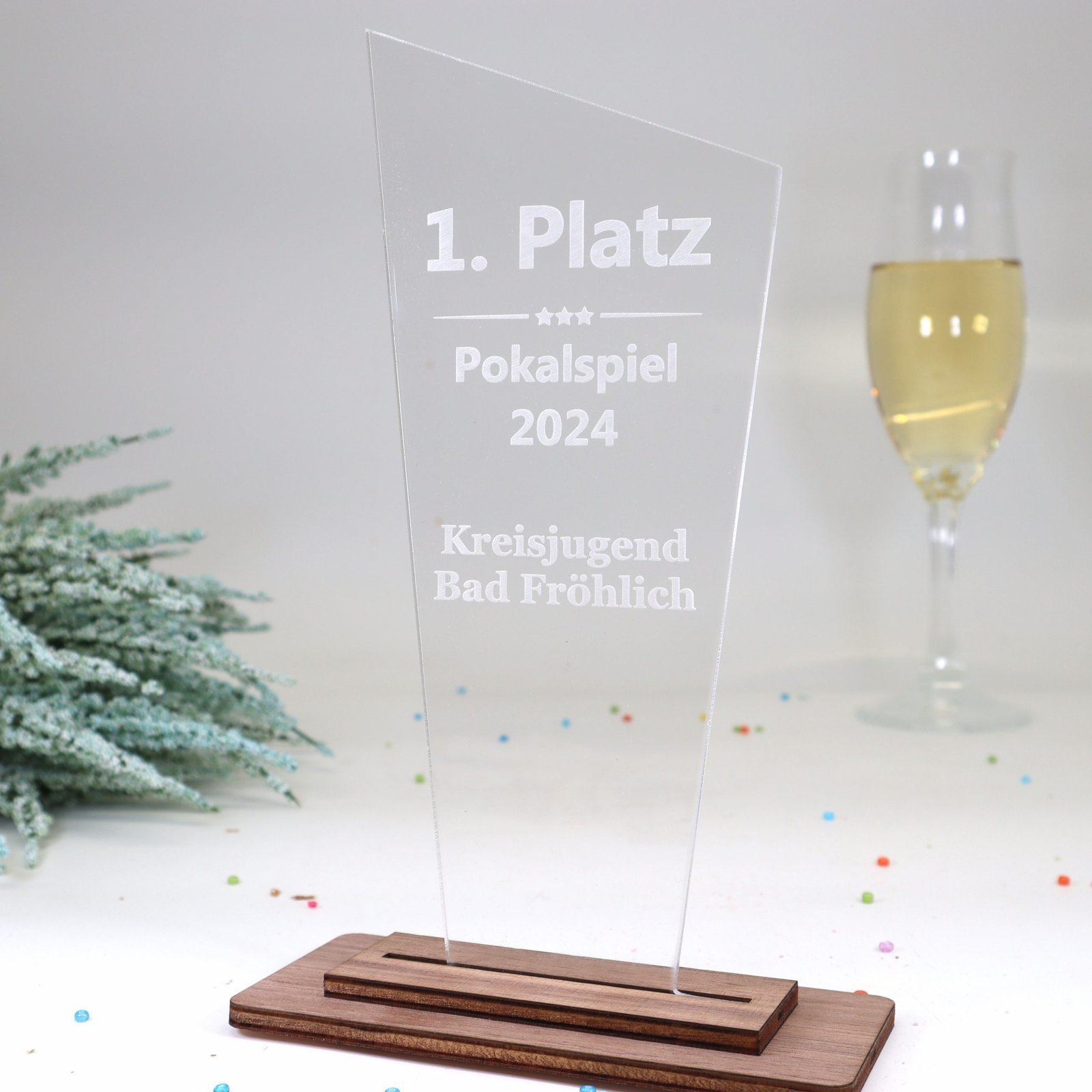 Moderne edle Sport Trophäe, eigener Text Logo, farbiges und klarem Acryl – Personalisierte Gravur – Pokal – Auszeichnung – Elegante Ehrungen