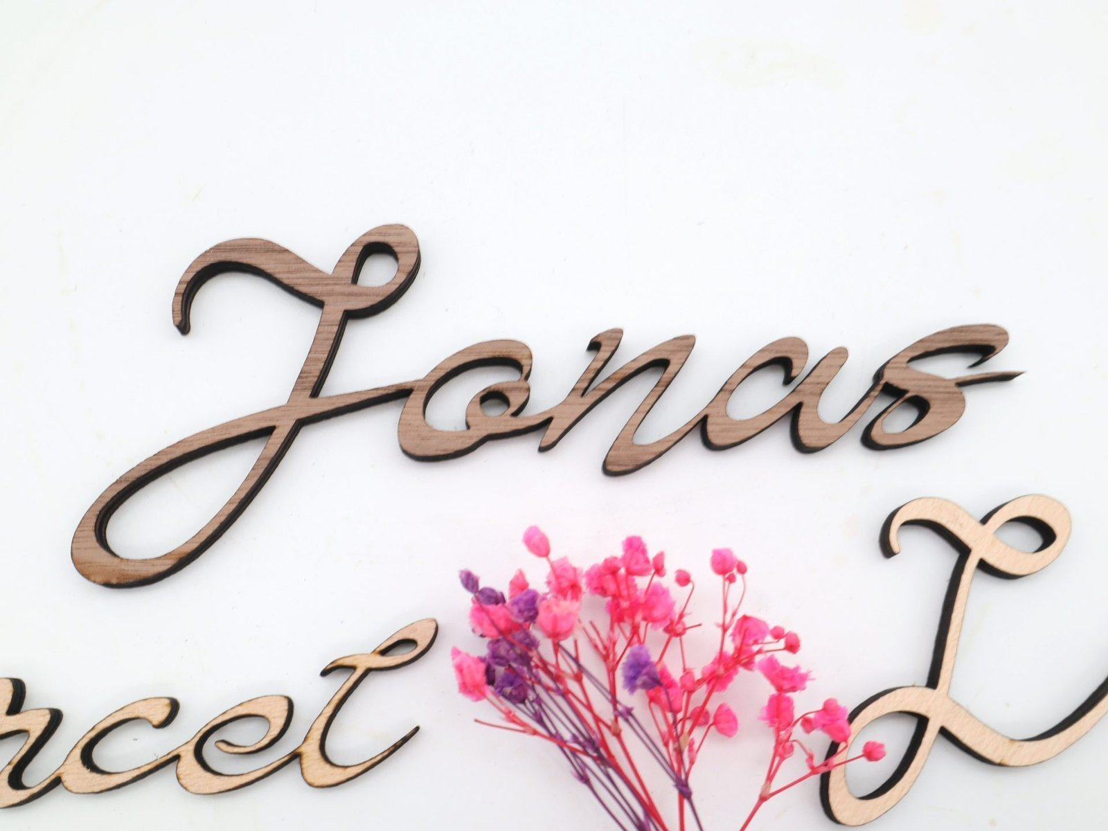 Unsere Namen aus Holz werden mit größter Sorgfalt und aus hochwertigem Sperrholz per Laser geschnitten, um ein elegantes und modernes Erscheinungsbild zu gewährleisten. Jeder Buchstabe wird kunstvoll gestaltet und verleiht Ihrem Raum einen Hauch von Raffinesse und Persönlichkeit.