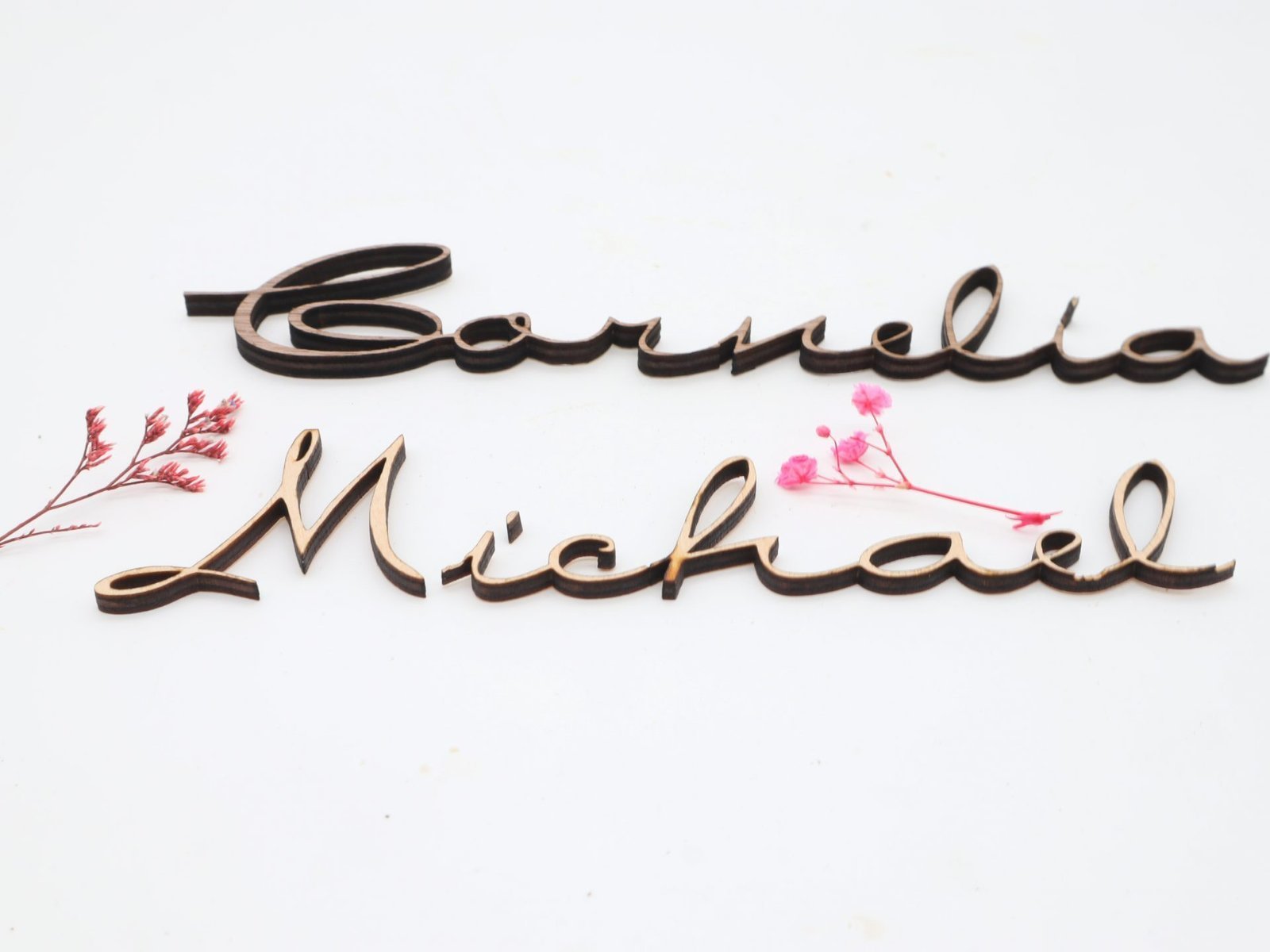 Namen als Schriftzug in Nussbaum, Ahorn, Buche personalisiertes Namenschild