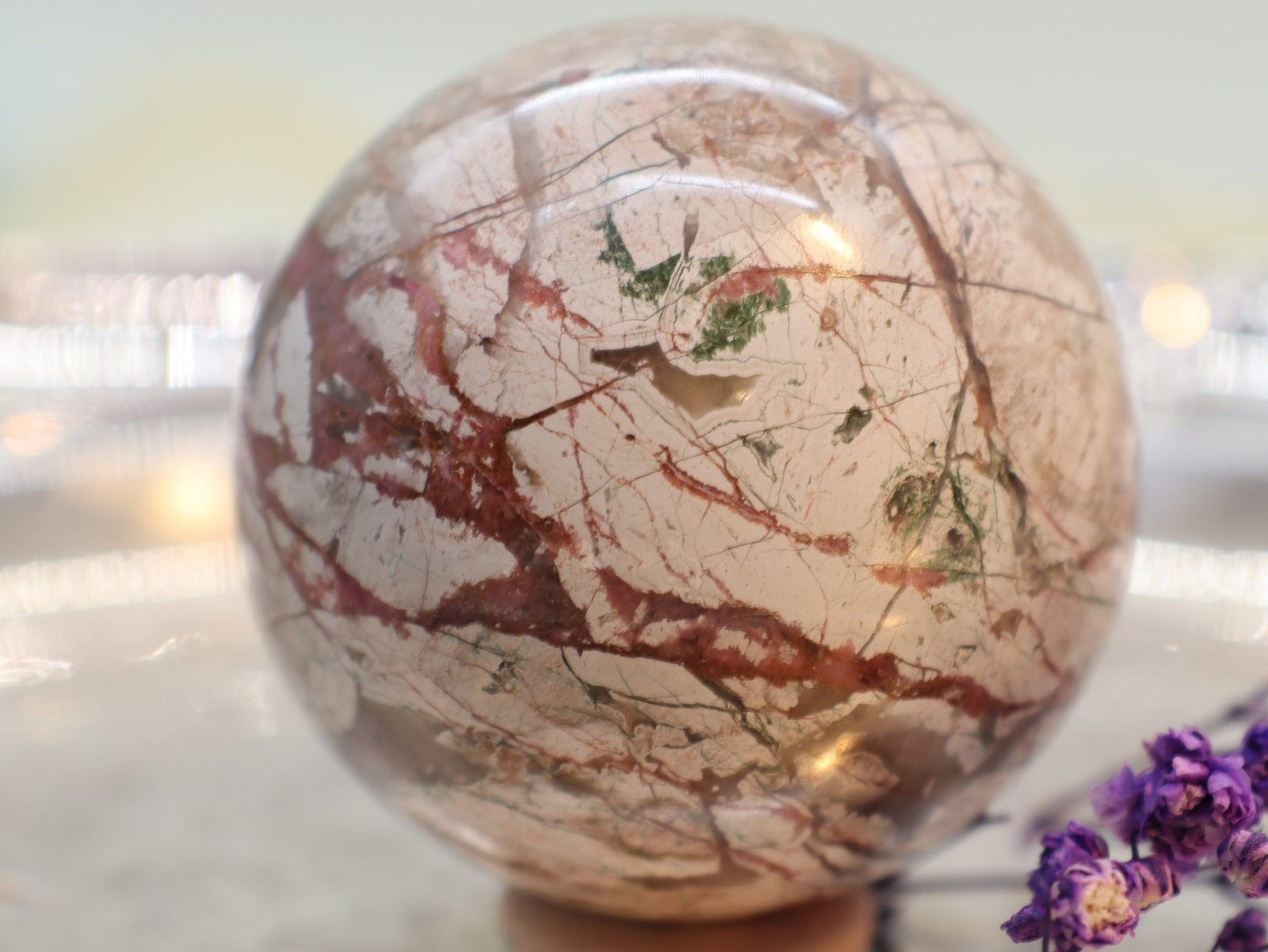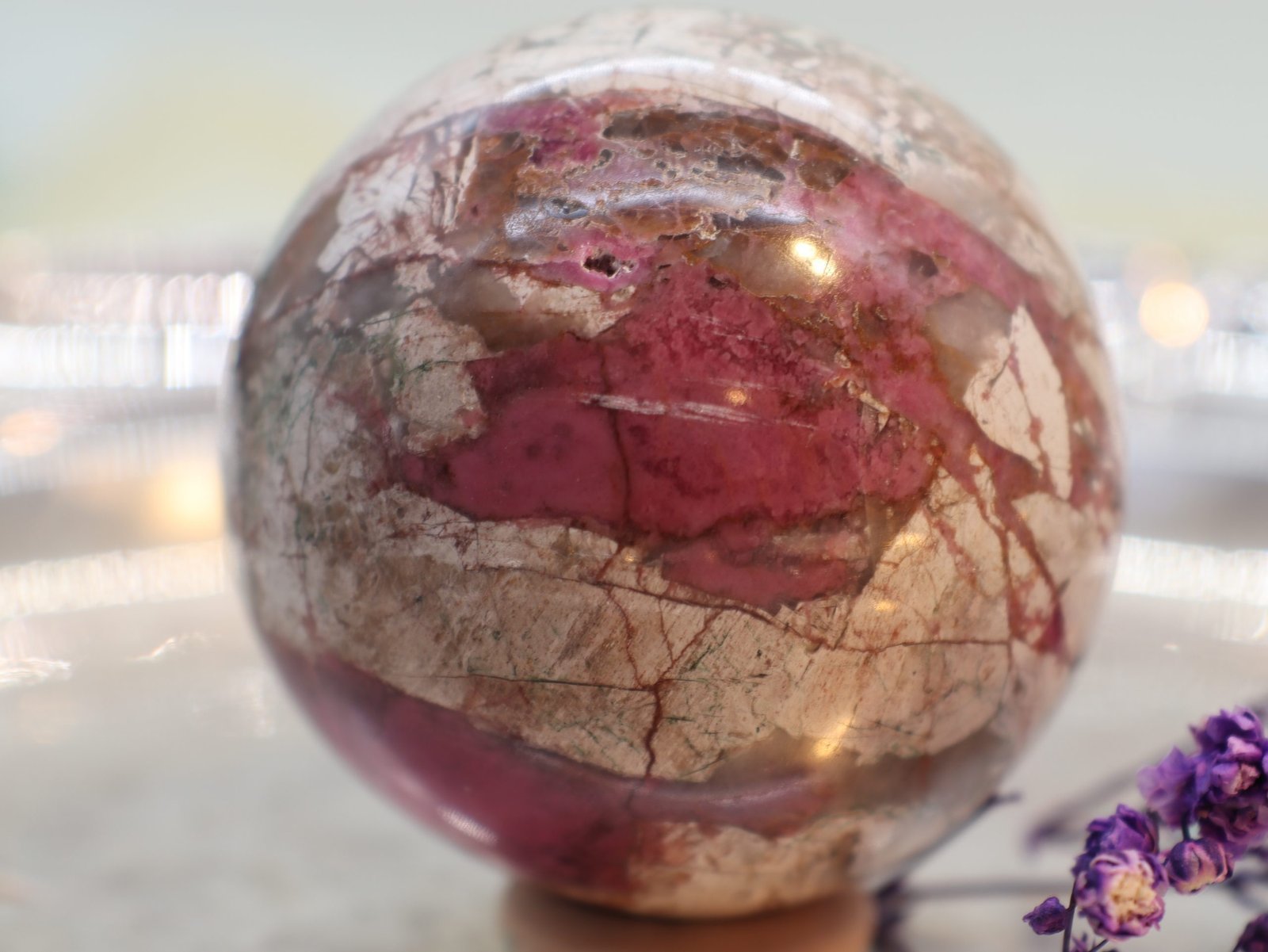 Eine seltene Cobalt-Cobalto-Calcit-Edelsteinkugel in hoher Qualität ist ein wahres Sammlerstück. Sie zeigt eine lebendige, intensive rosa bis magentafarbene Färbung, die durch die hohe Konzentration von Cobalt im Mineral entsteht. Die Oberfläche ist glatt poliert und hat einen starken Glanz, der das Licht auf eine brillante Weise reflektiert und die satten Farbtöne noch lebendiger erscheinen lässt. Innerhalb der Kugel können gelegentlich zarte weiße Adern oder kristalline Strukturen zu sehen sein, die der Kugel eine interessante Textur und Tiefe verleihen.