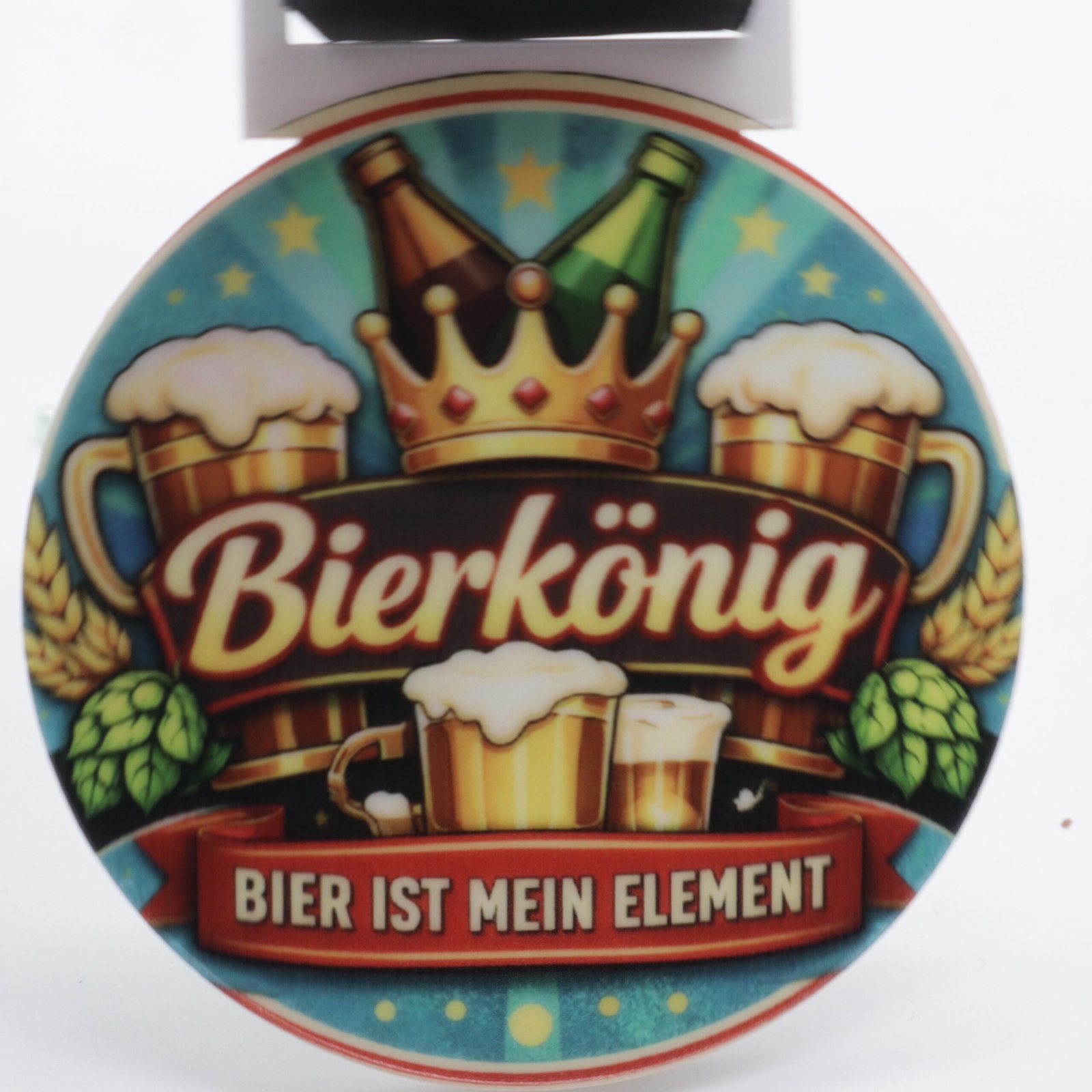 Diese hochwertige Bier‑Medaille ist das perfekte Highlight für jede Feier, bei der Humor, gute Laune und ein kaltes Getränk nicht fehlen dürfen. Das detailreiche Motiv mit Krone, Bierflaschen, Bierkrügen und Hopfen verleiht der Medaille einen festlichen, fröhlichen Charakter – ideal, um jemanden zum „Bierkönig“ des Abends zu küren.