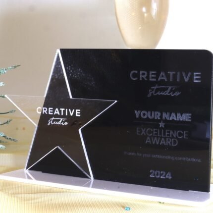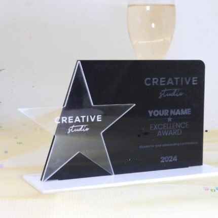 Acrylglas Trophäe Award mit Stern, personalisierter eigener Text oder Logo