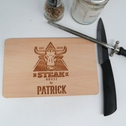 Schneidbrett für Steaks und Grillen, Grill Father Barbeque, Grillbrett aus unbehandelten Buchenholz, BBQ, Männer Geschenk für Grillmeister