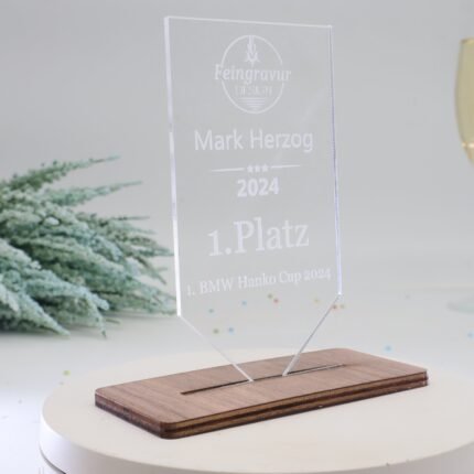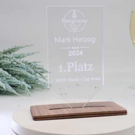 Moderne edle Sport Trophäe, eigener Text Logo, farbiges und klarem Acryl – Personalisierte Gravur – Pokal
