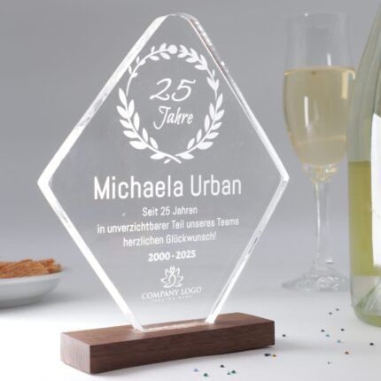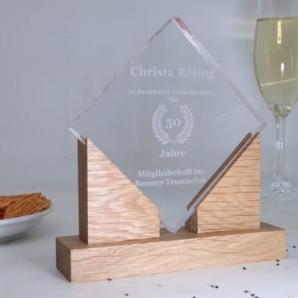 Moderner Acryl Award mit Holzsockel – personalisierbar & hochwertig
