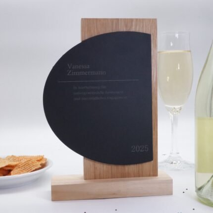 Moderner Award Acrylglas mit Eichenholz – personalisierbar & hochwertig