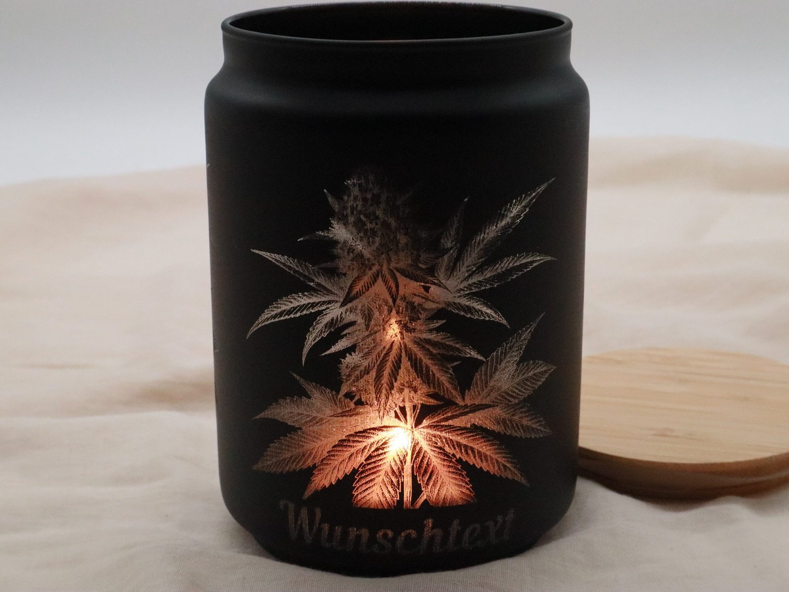 Aufbewahrung Cannabis Dolden Motiv Glas graviert | Personalisiert | Cannabisblüten | Grow Weed Seed | Unkraut Aufbewahrung