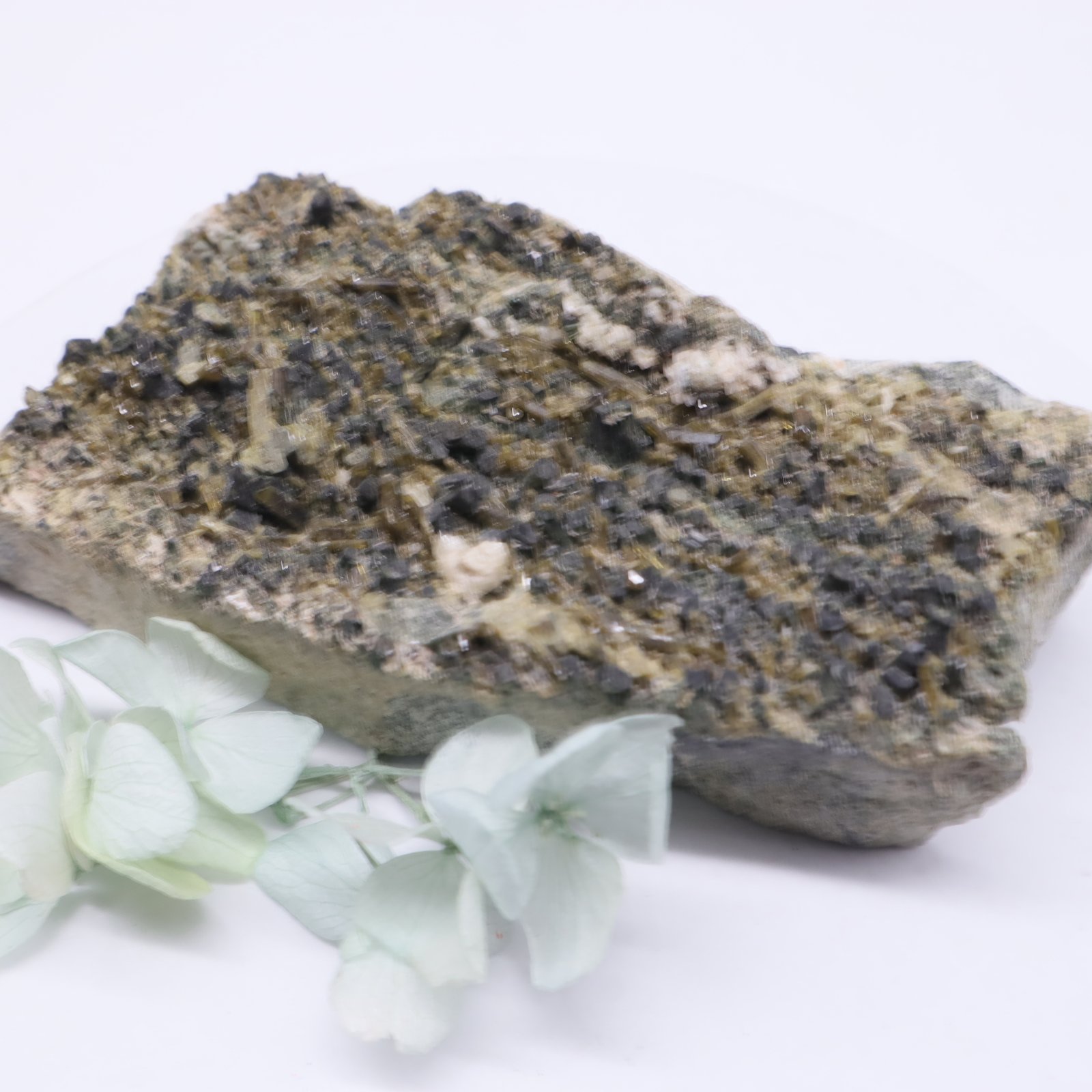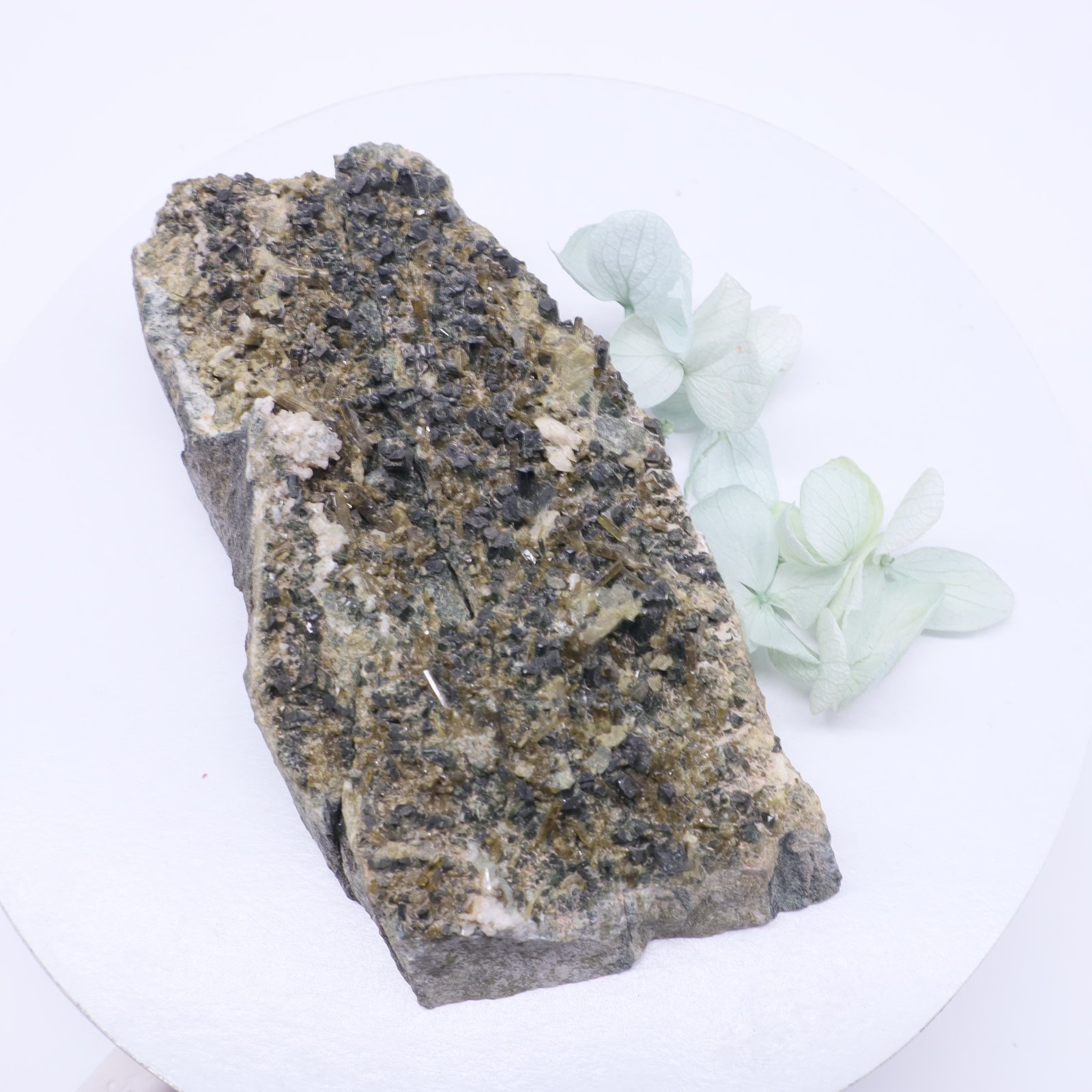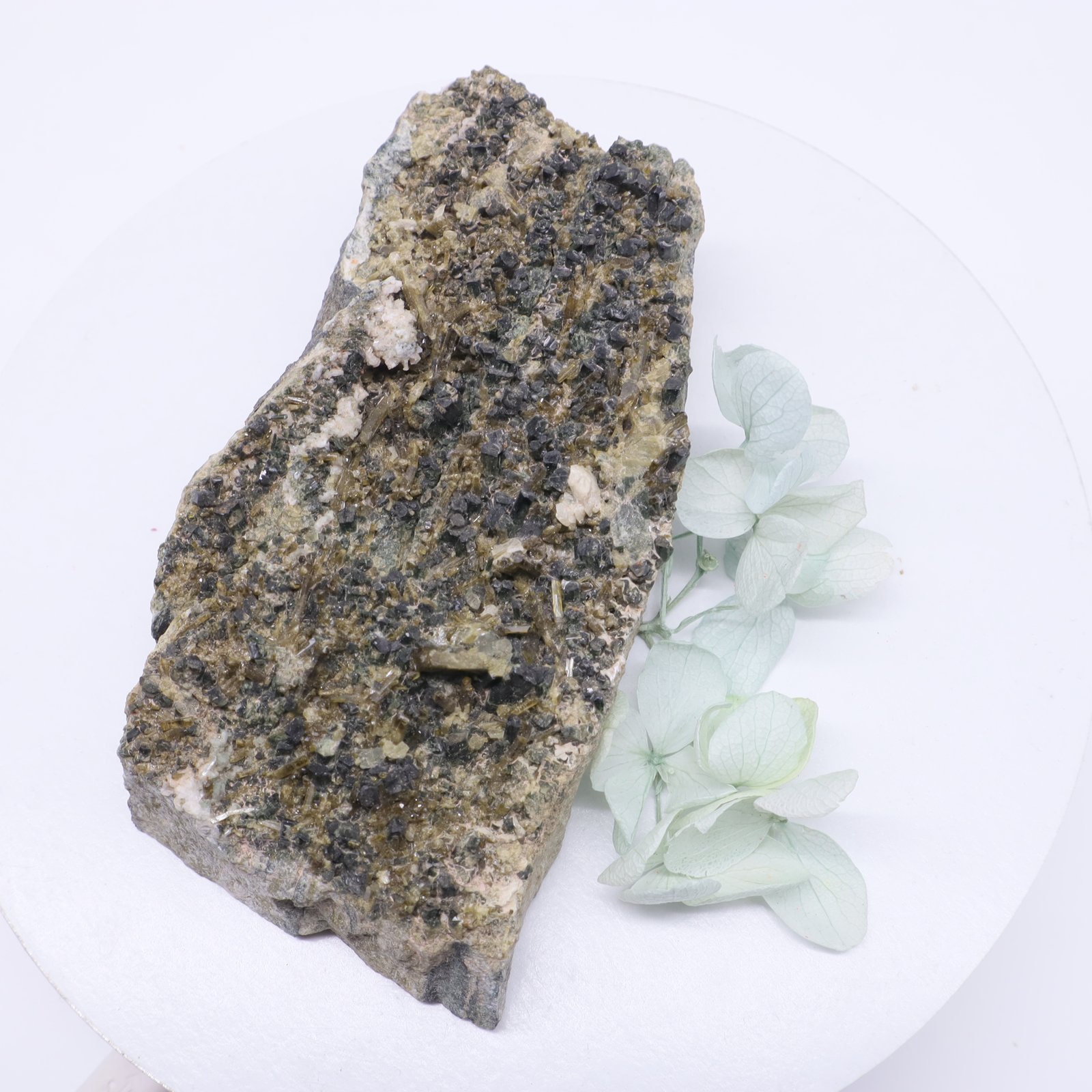 Epidot Rohstein aus Südfrankreich, Mineralien Cluster, Kristall Stufe, unbehandelter Brocken, zur Schmuckherstellung, Edelstein schleifen und Sammeln