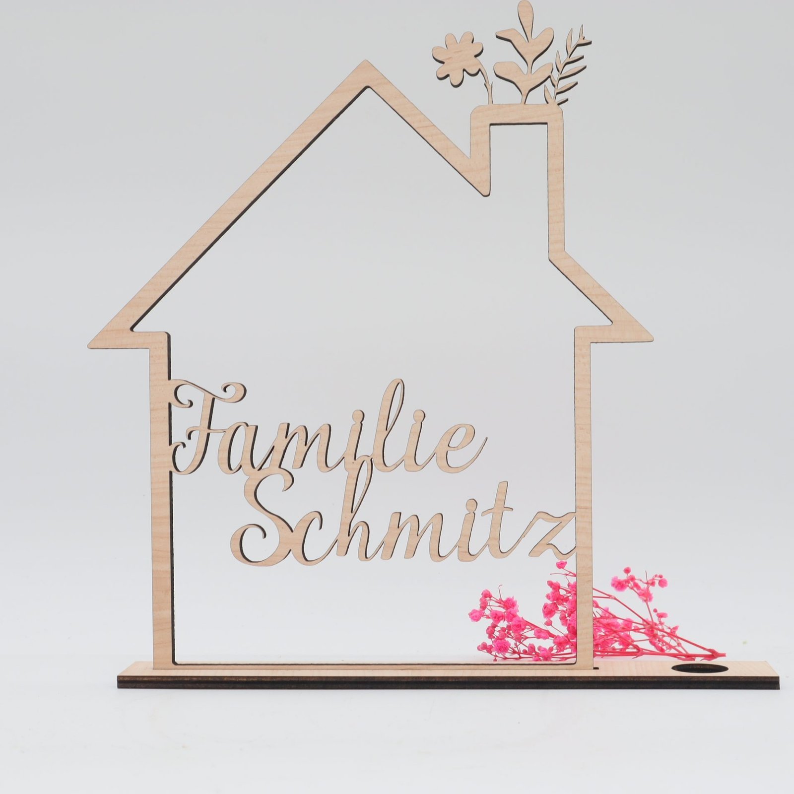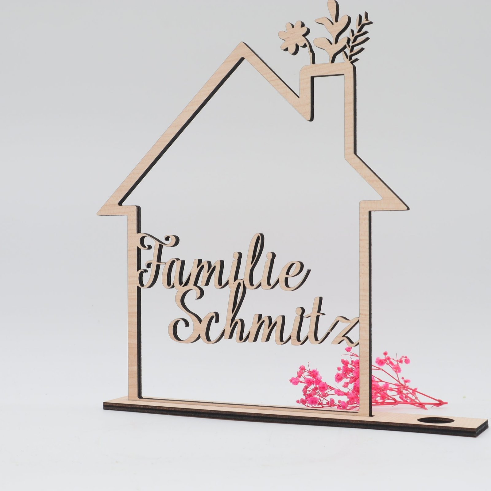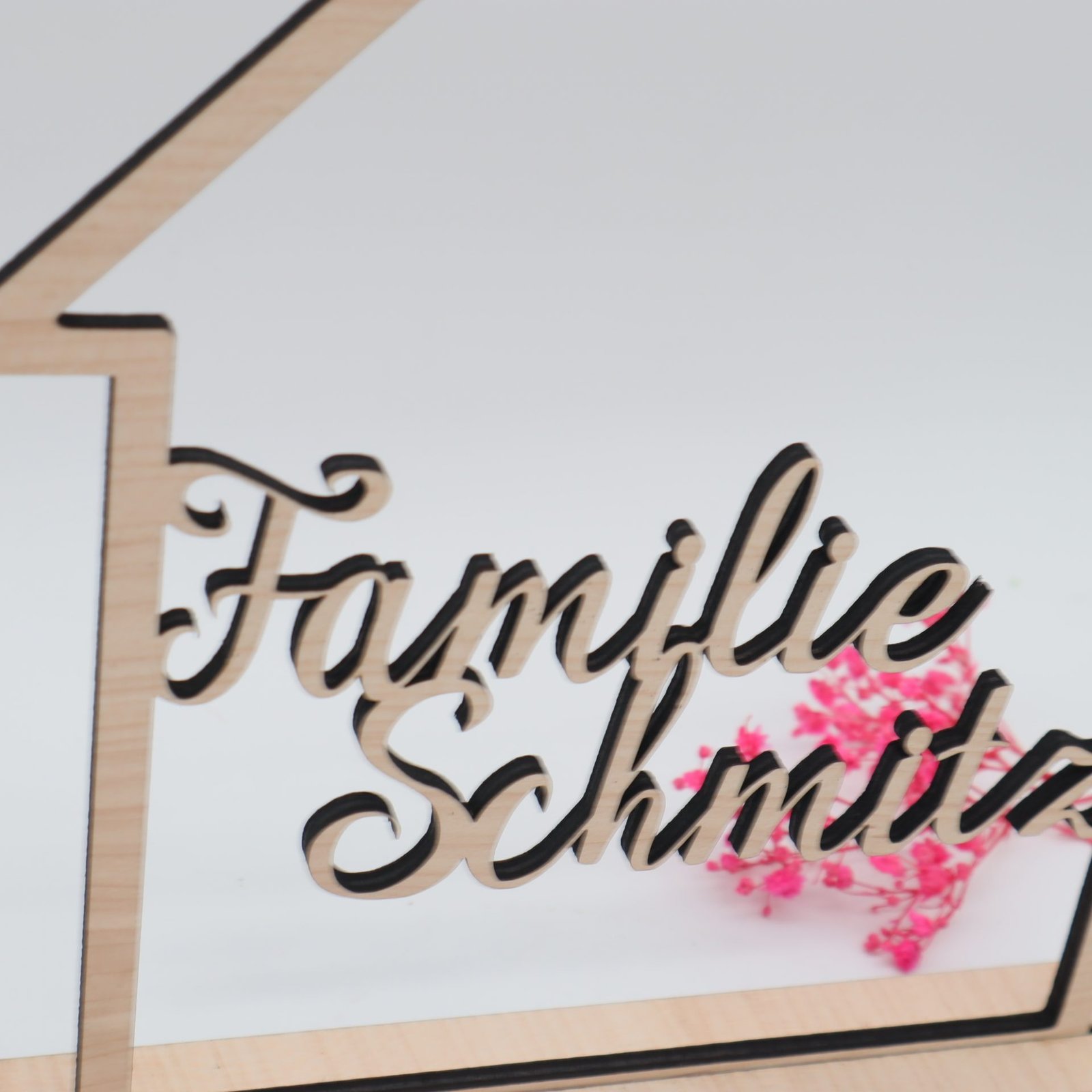 Haus mit Namen aus Holz als Geschenk oder Dekoration