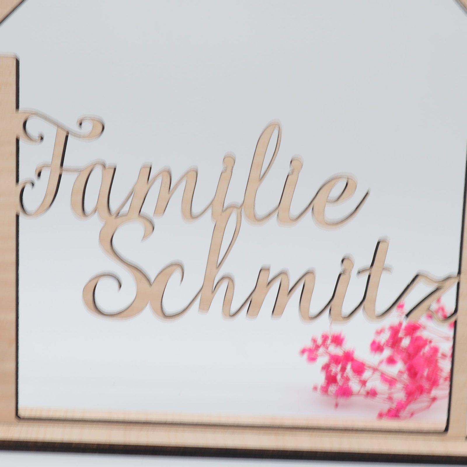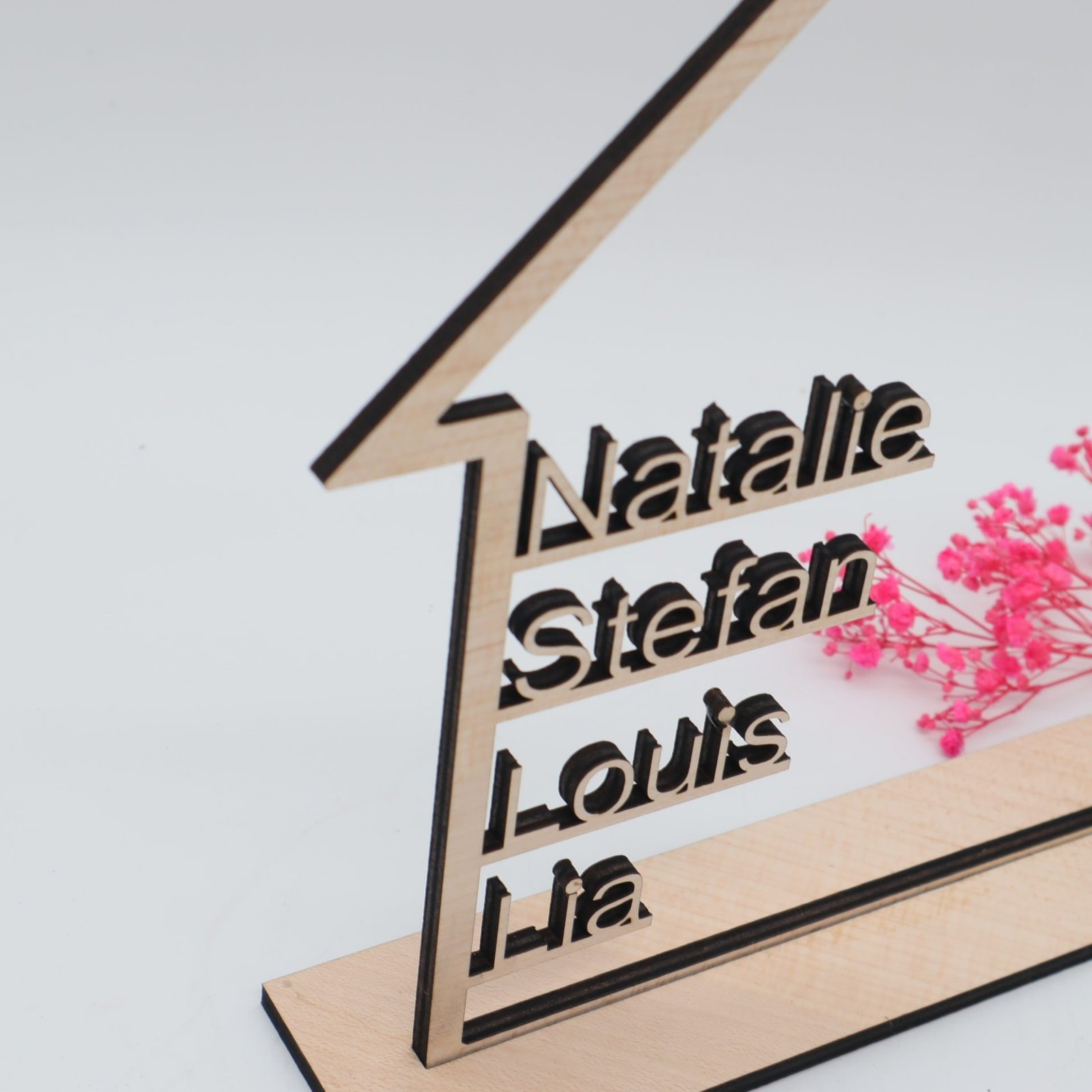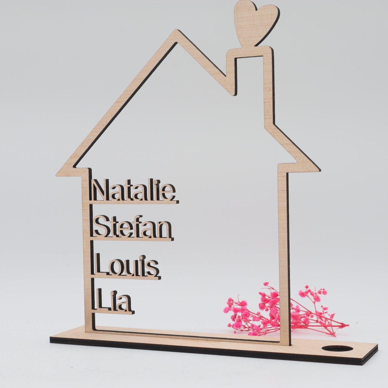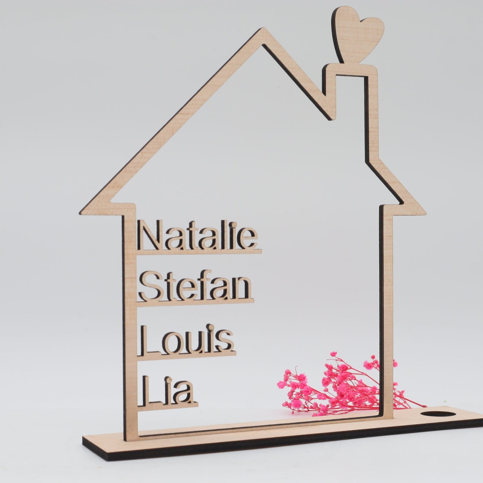 Haus mit Namen aus Holz als Geschenk oder Dekoration