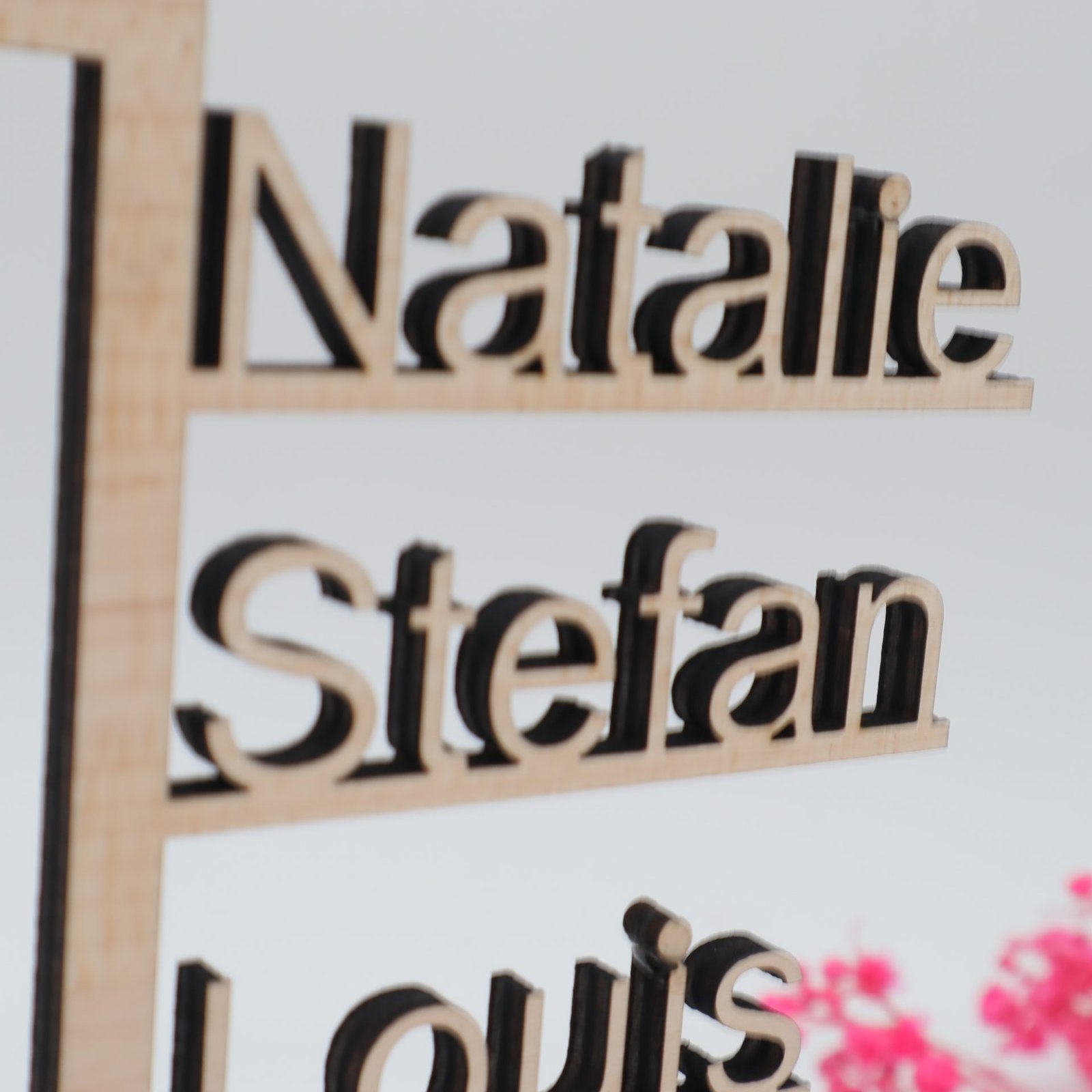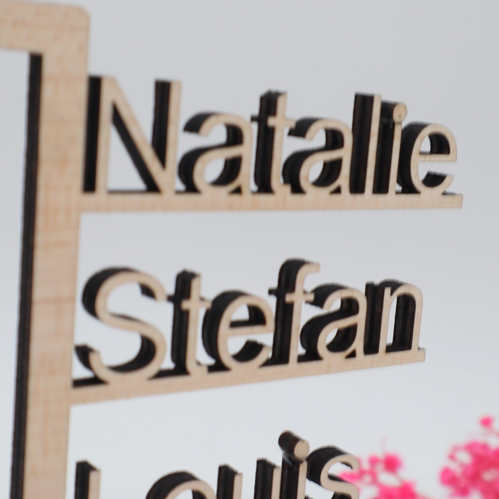 Dieses Namensschild, in seiner natürlichen Holzfarbe oder in tiefem Schwarz, trägt die individuellen Namen unserer Familienmitglieder oder den gemeinsamen Familiennamen. Es ist mehr als nur ein Schmuckstück – es ist ein Symbol der Einheit, das in allen Lebenslagen seine Bedeutung entfaltet.