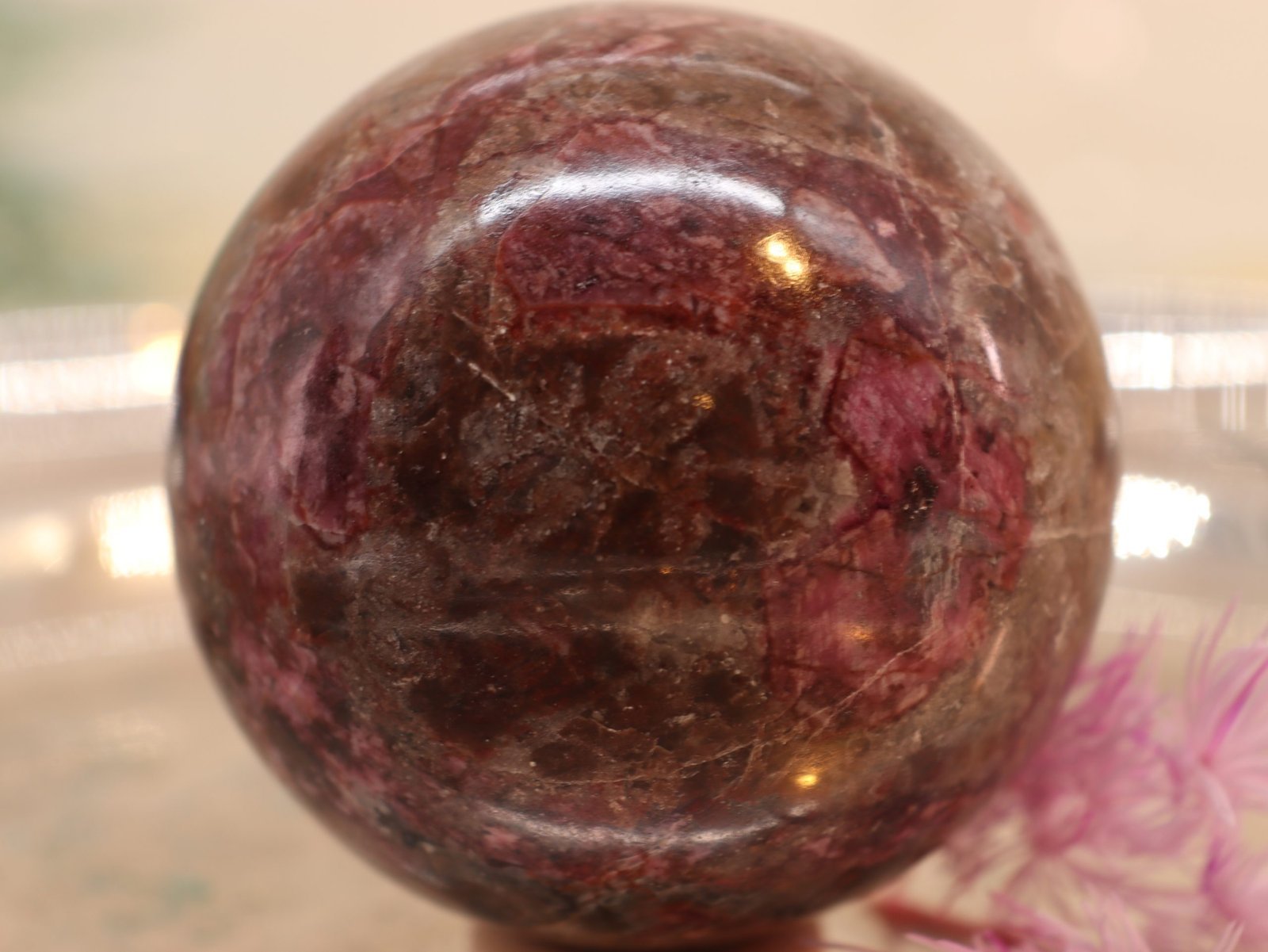 Eine seltene Cobalt-Cobalto-Calcit-Edelsteinkugel in hoher Qualität ist ein wahres Sammlerstück. Sie zeigt eine lebendige, intensive rosa bis magentafarbene Färbung, die durch die hohe Konzentration von Cobalt im Mineral entsteht. Die Oberfläche ist glatt poliert und hat einen starken Glanz, der das Licht auf eine brillante Weise reflektiert und die satten Farbtöne noch lebendiger erscheinen lässt. Innerhalb der Kugel können gelegentlich zarte weiße Adern oder kristalline Strukturen zu sehen sein, die der Kugel eine interessante Textur und Tiefe verleihen.