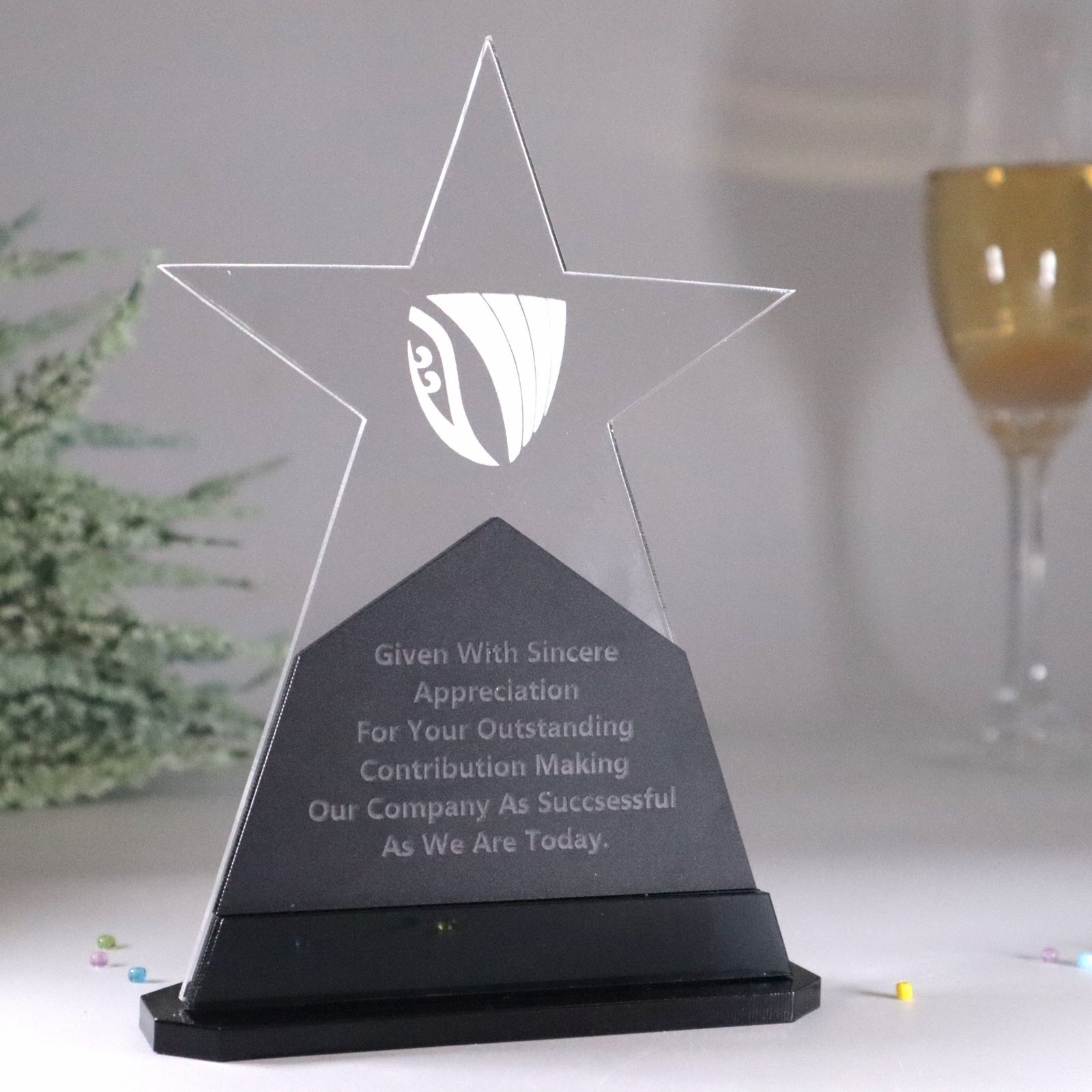 Verleihen Sie besonderen Momenten Glanz mit einem personalisierten Pokal aus transparentem und farbigem Acrylglas mit Stern!