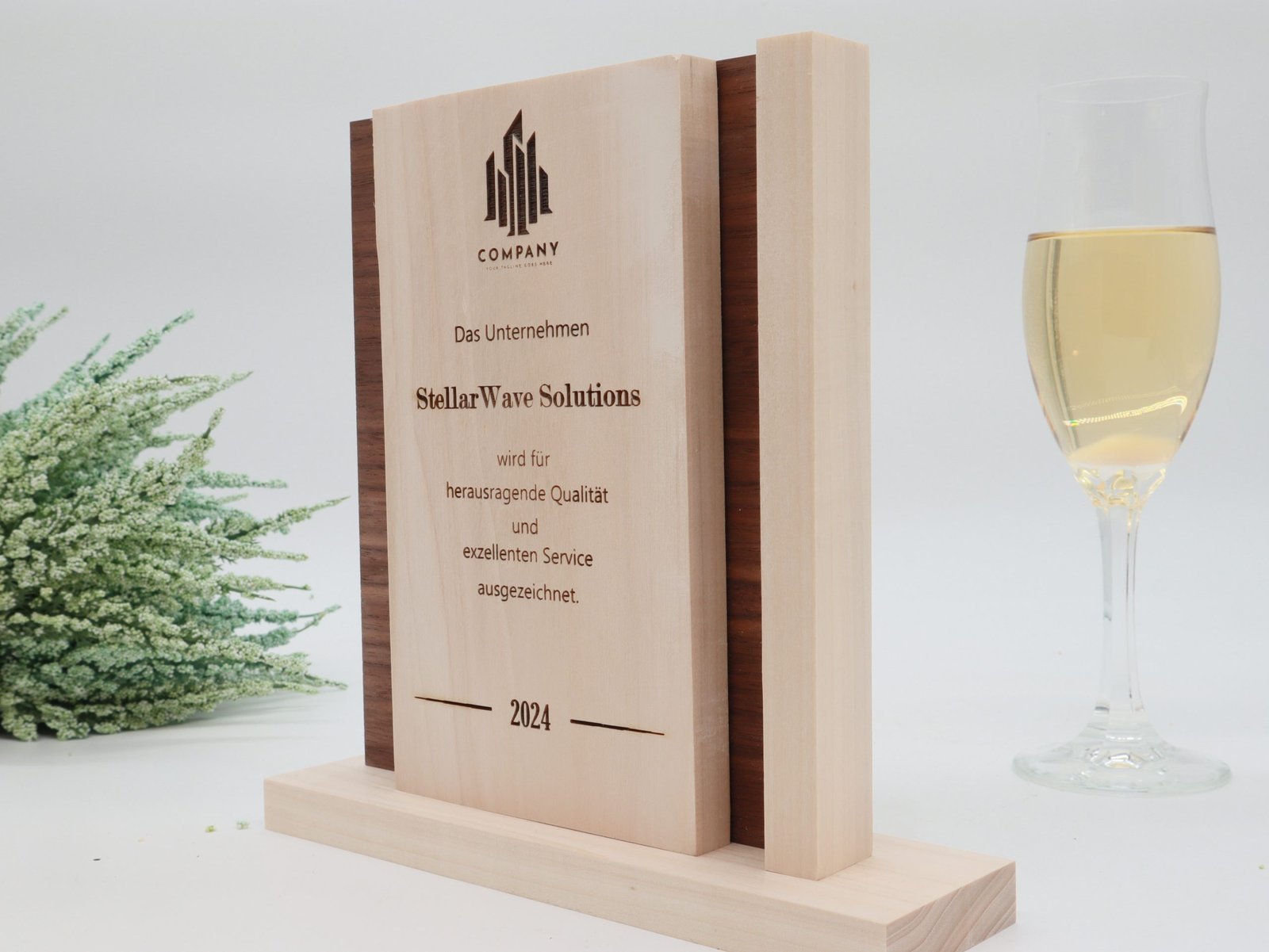 Ob Firmenlogo, inspirierender Text oder ein ganz persönlicher Gruß – gestalten Sie den Award nach Ihren Vorstellungen. Lassen Sie ihn zu einem Unikat werden, das Ihre Botschaft trägt und besondere Momente auf eine zeitlose Weise würdigt.