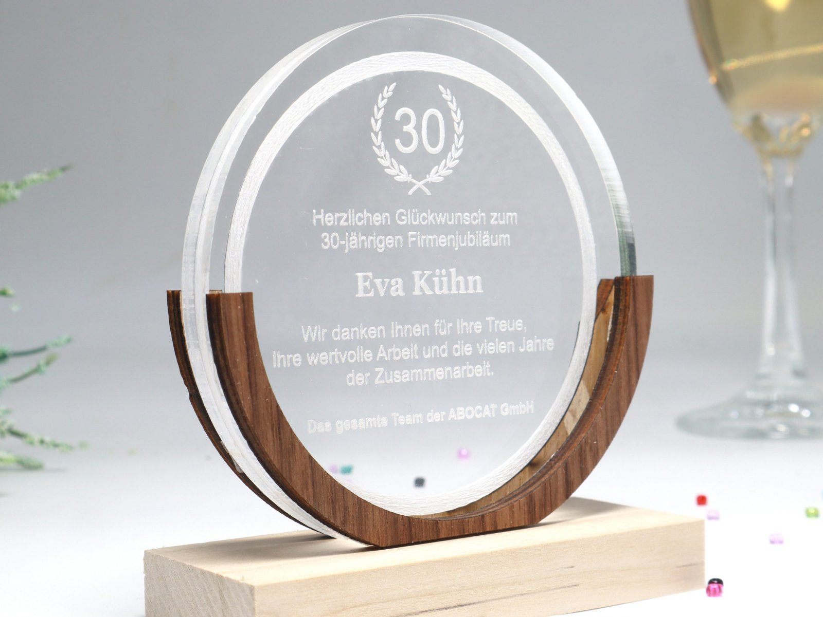 Moderne edle Trophäe Award, eigener Text oder Logo, Orden Medaille aus Nussbaum und Acryl – Personalisierter Pokal – Auszeichnung
