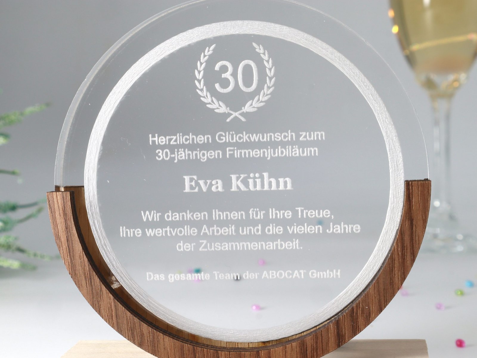 Ihr Erfolg verdient einen besonderen Glanz – unsere runde Acrylglas-Trophäe vereint Eleganz und Individualität.