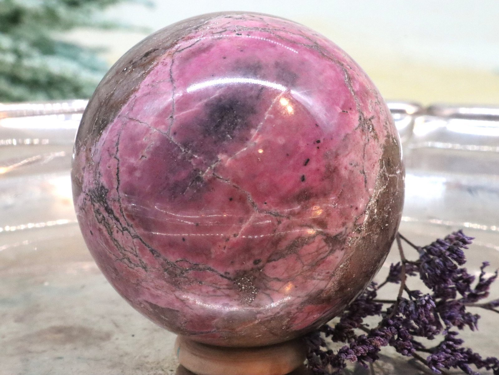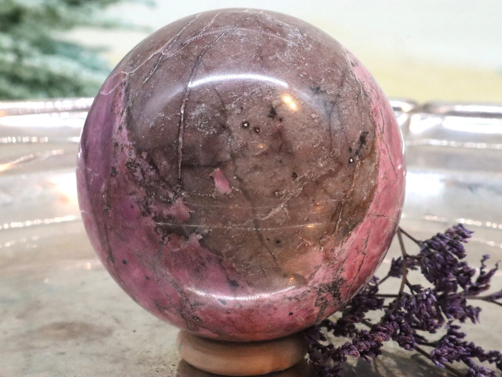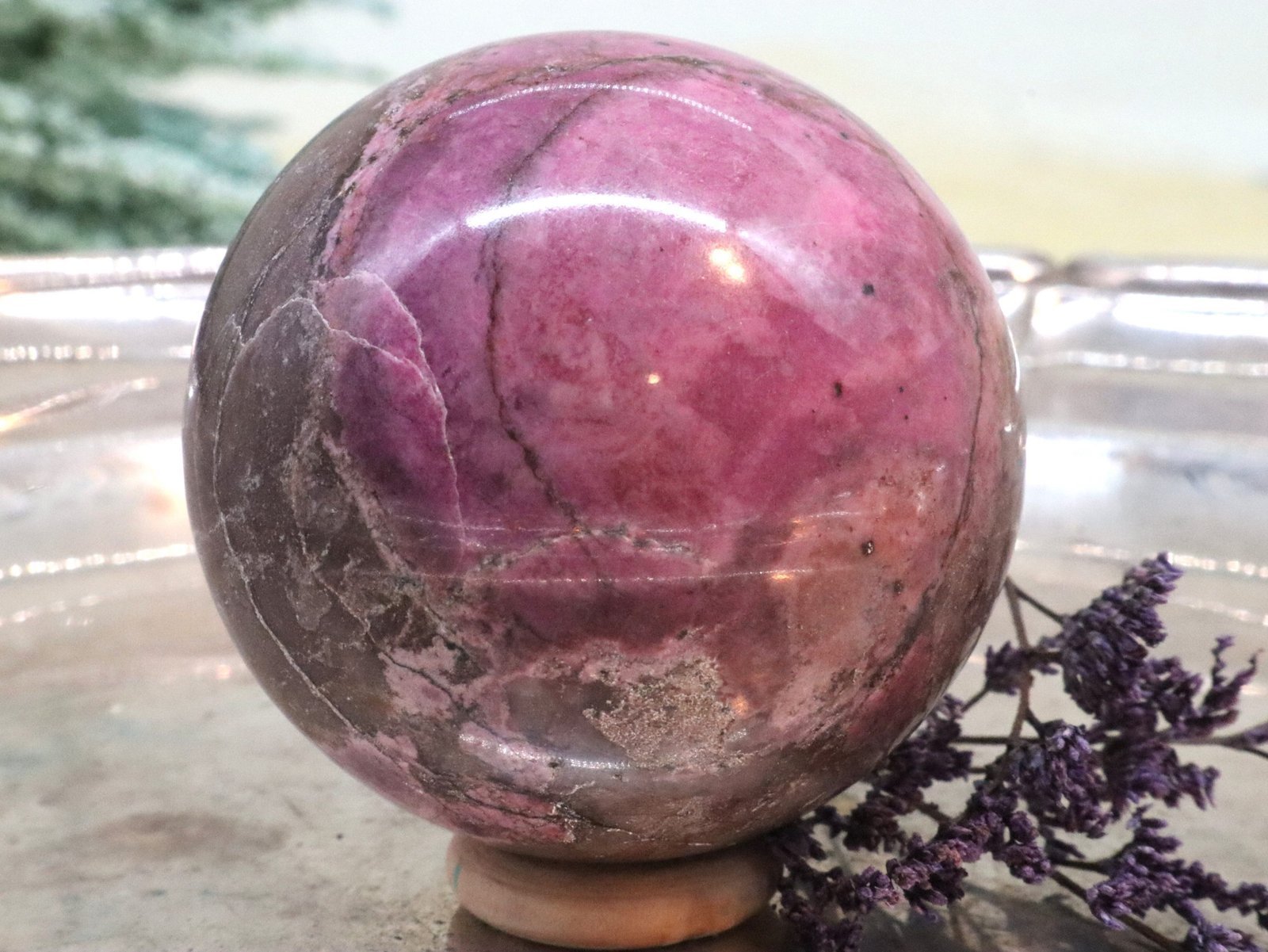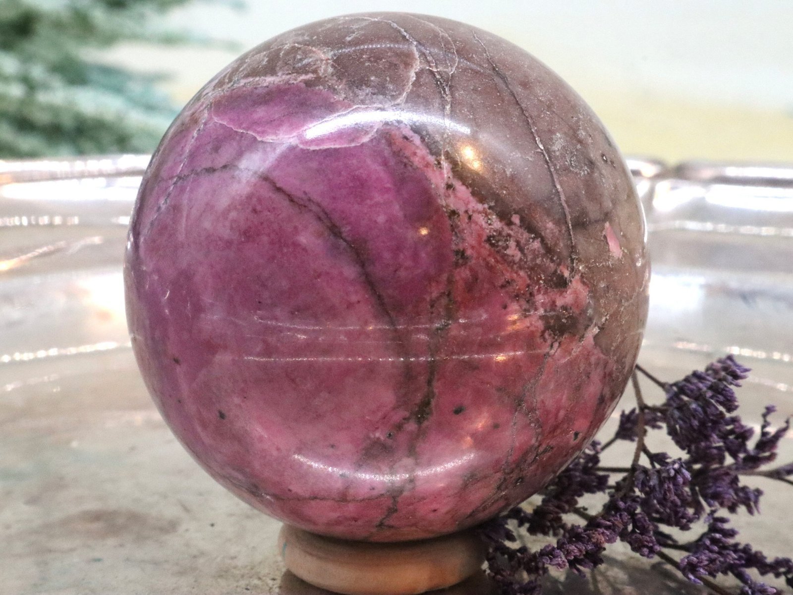 Große Rote Cordierit Edelsteinkugel, seltenes Fundstück, schöne Struktur, 83 mm