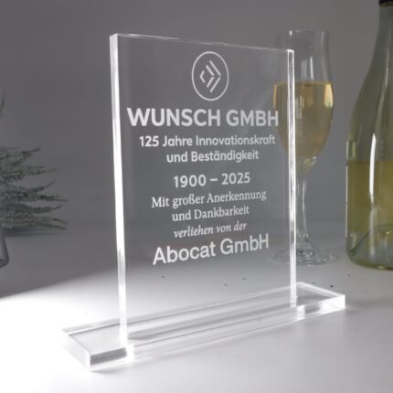 Personalisierte Acrylglas Trophäe – Rechteckig mit Sockel | 10 mm Premiumglas | Lasergravur mit Text & Logo