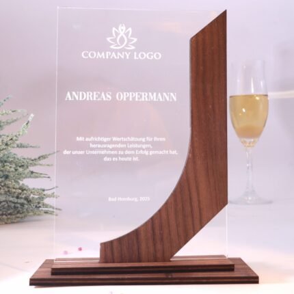 Personalisierter Award, Pokal und Trophäe, Acrylglas und Nussbaum