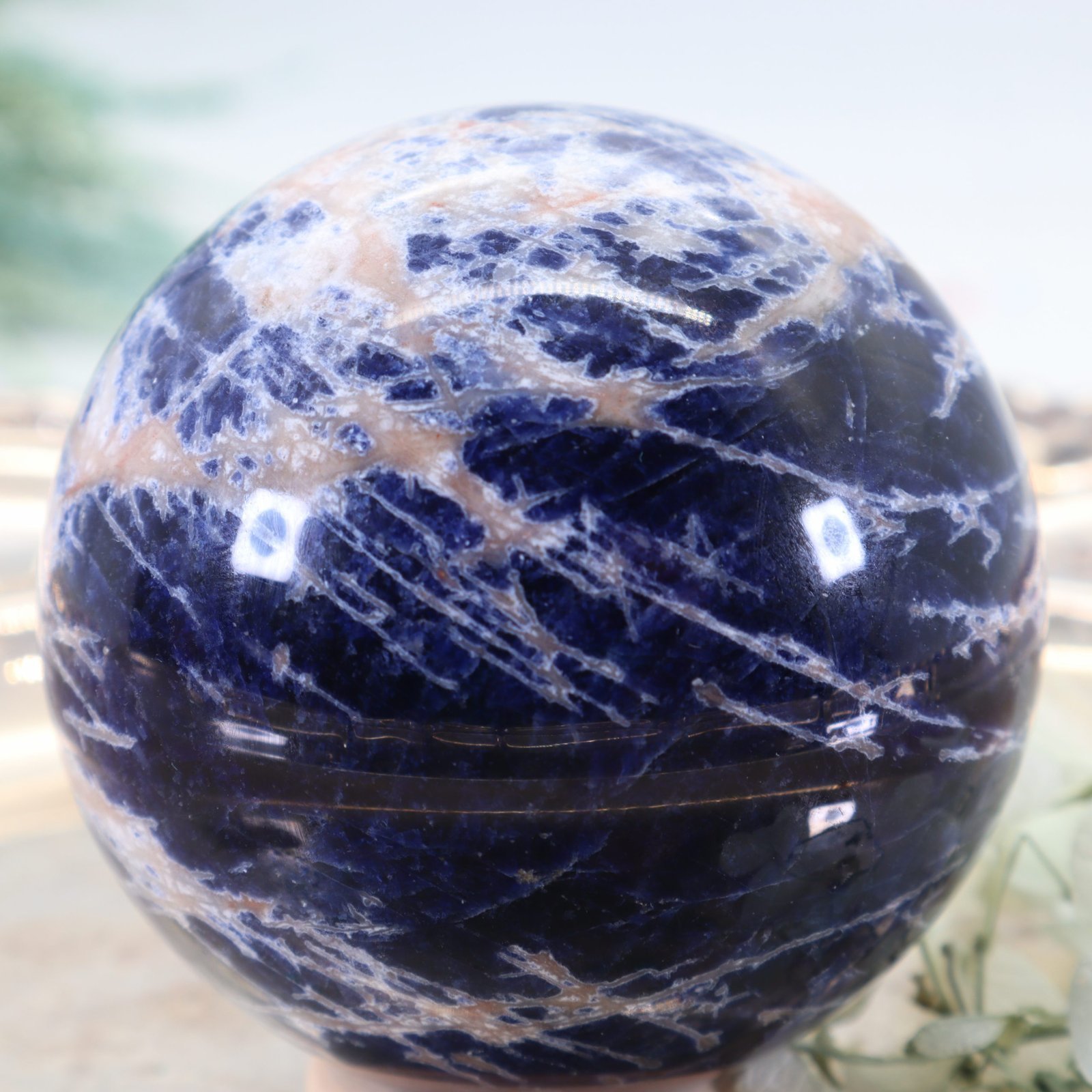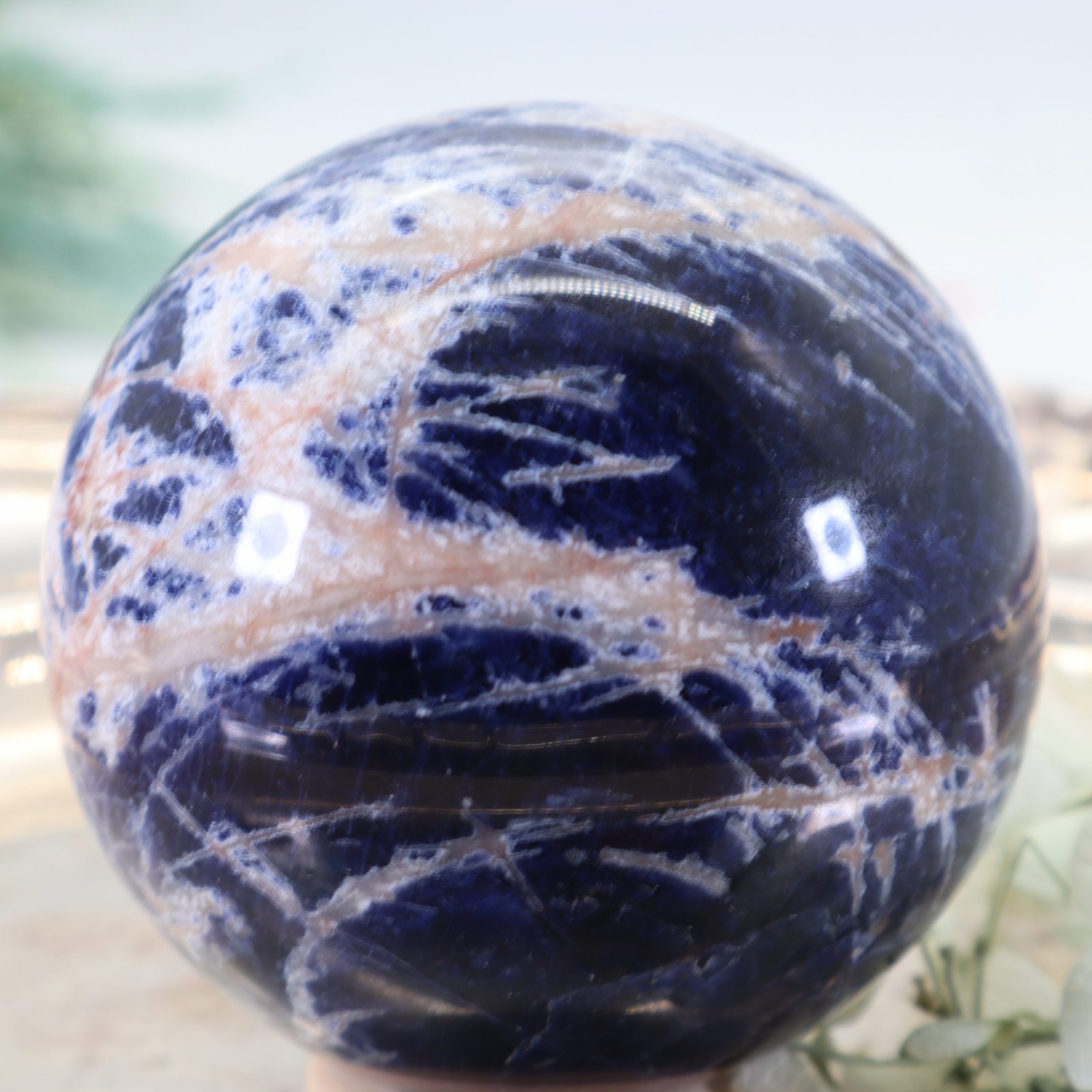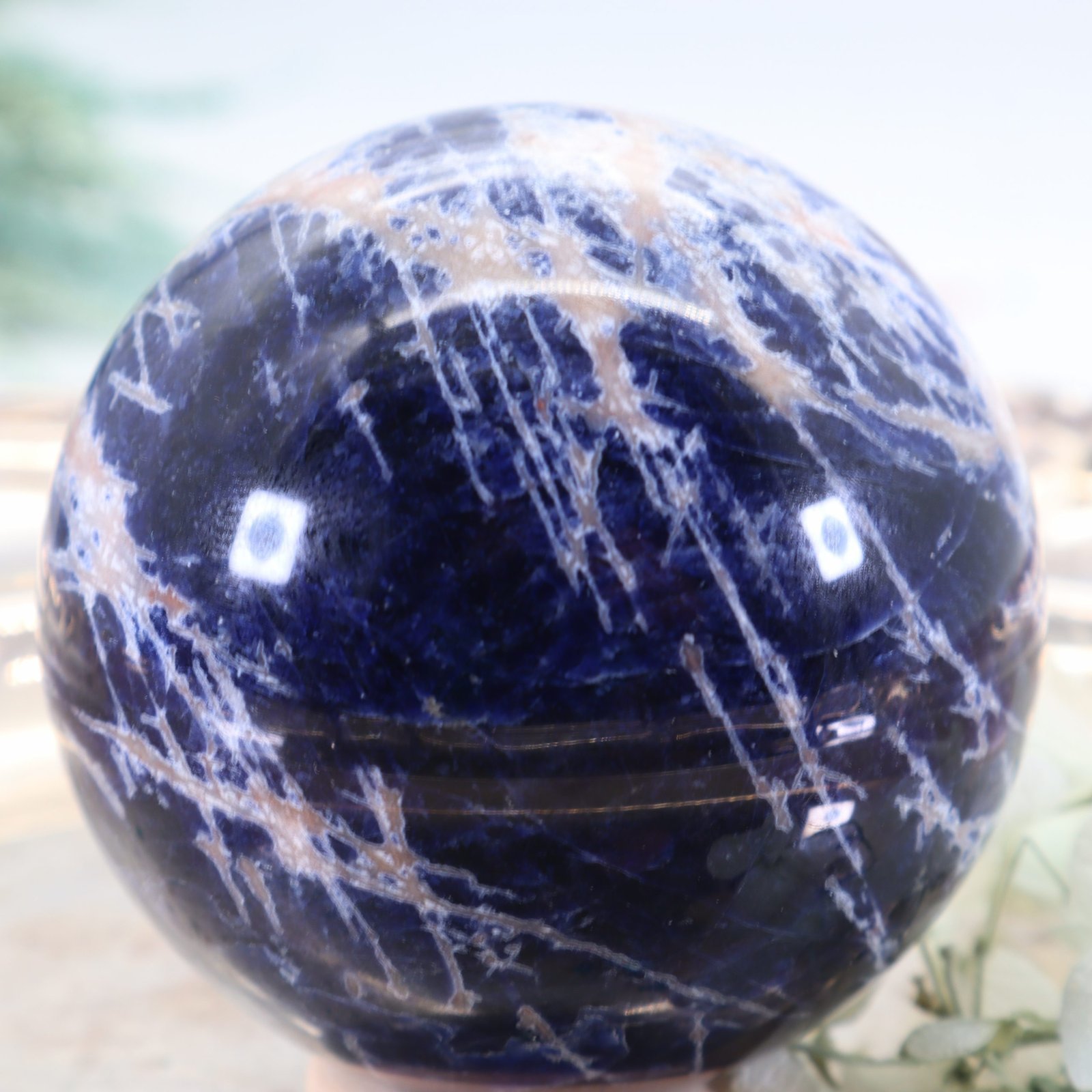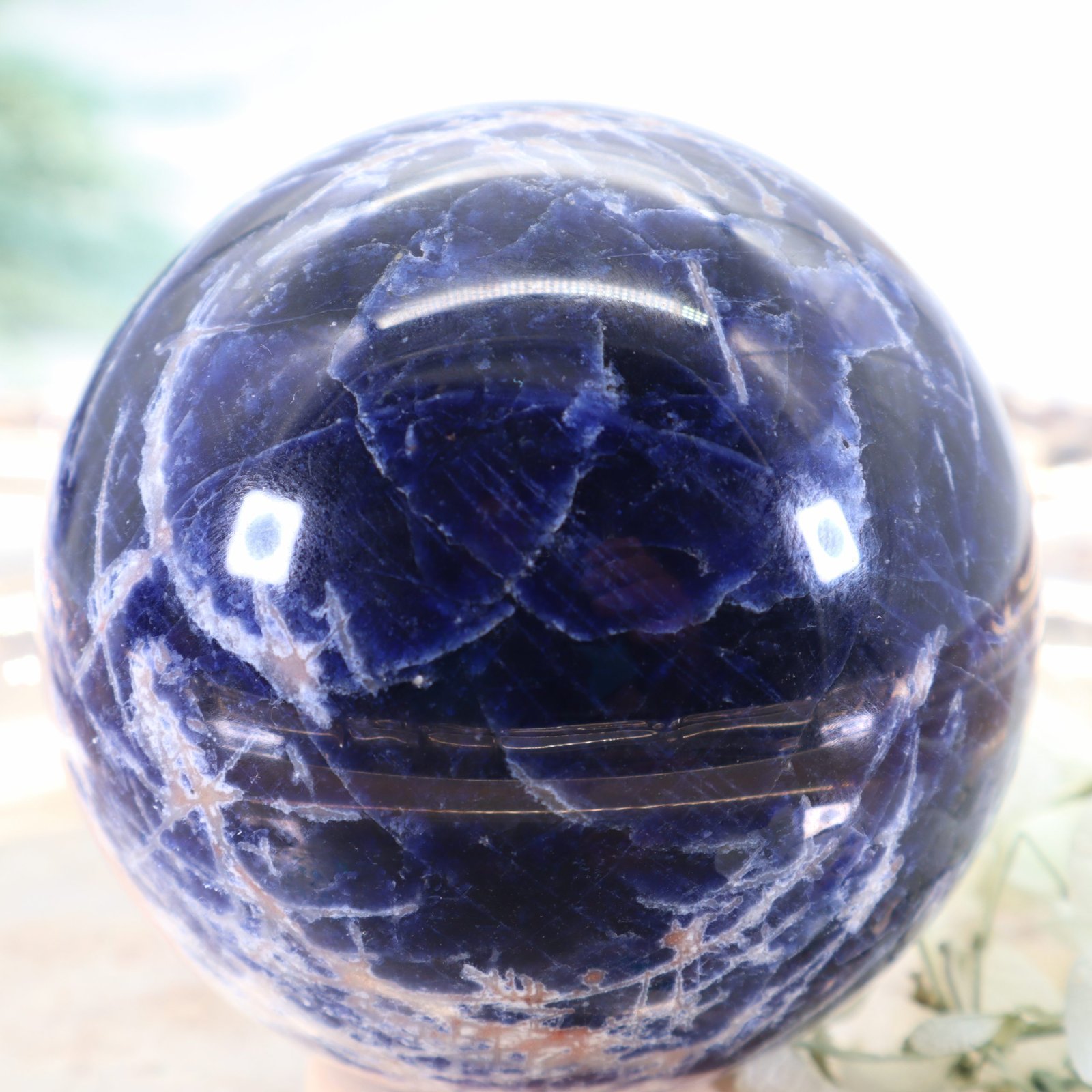 Erleben Sie die Perfektion des königsblauen Sodalits in Form einer hochglanzpolierten Edelsteinkugel – ein Kunstwerk, das Schönheit und Spiritualität in Ihr Leben bringt.
