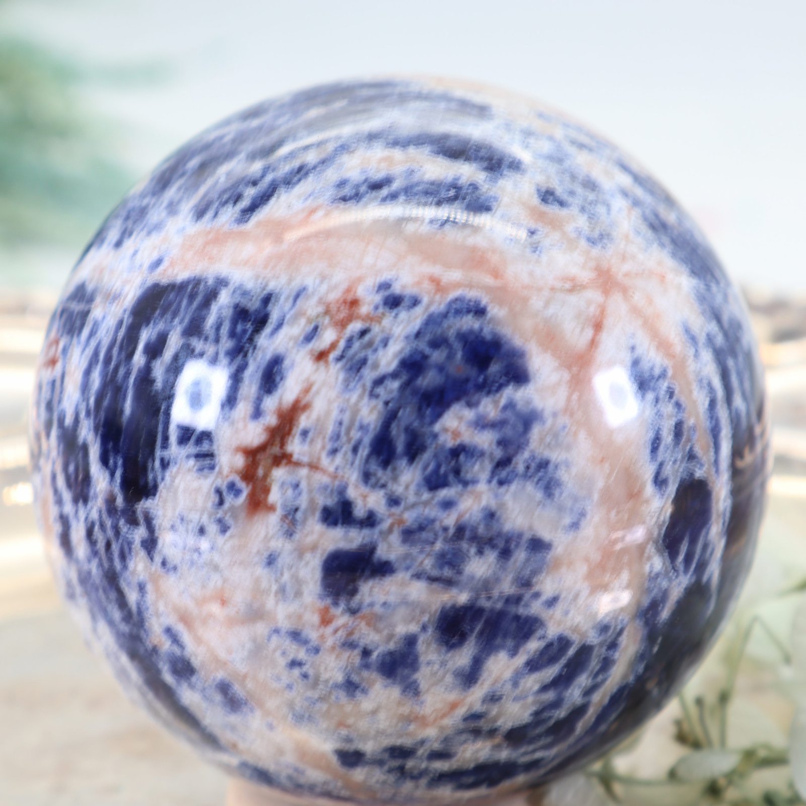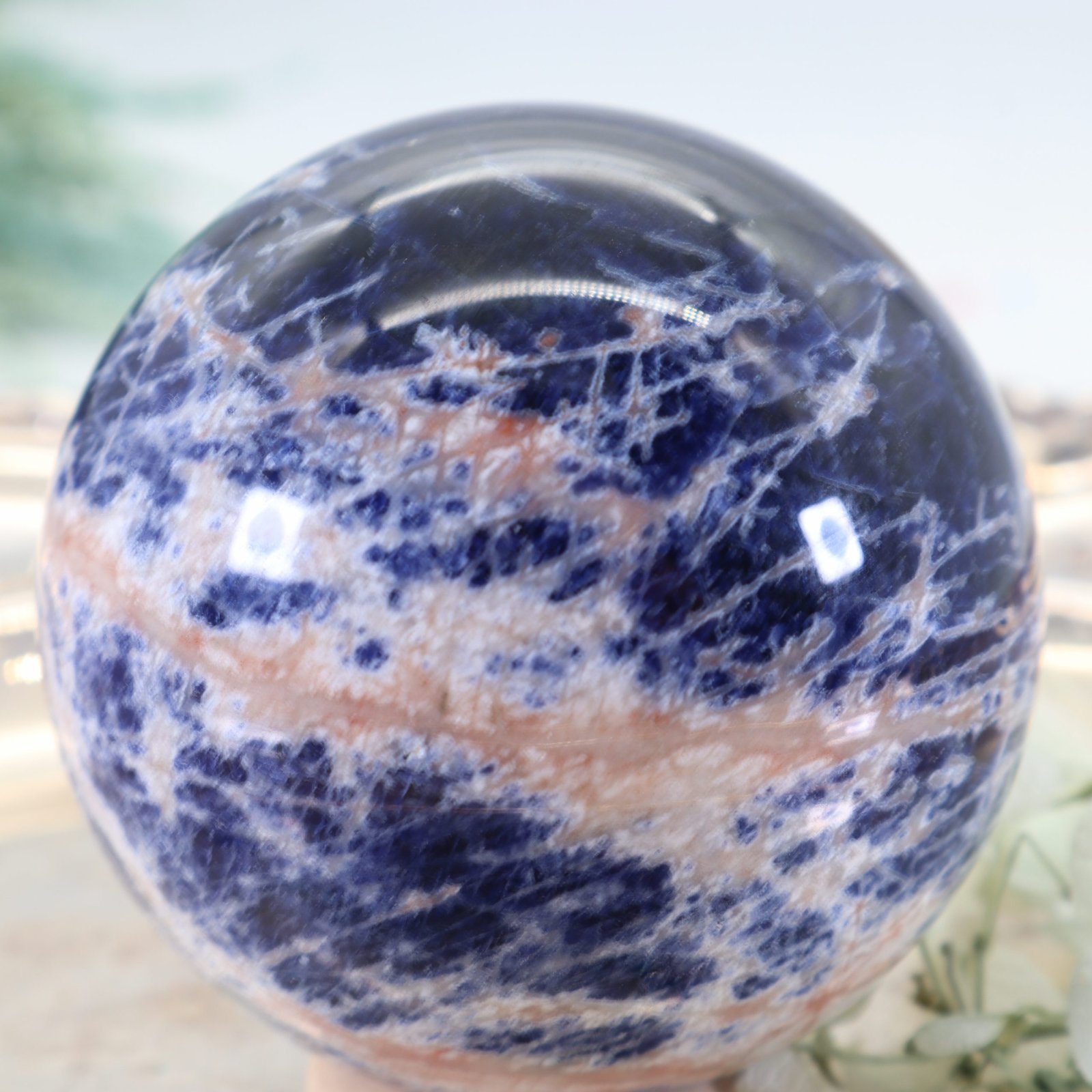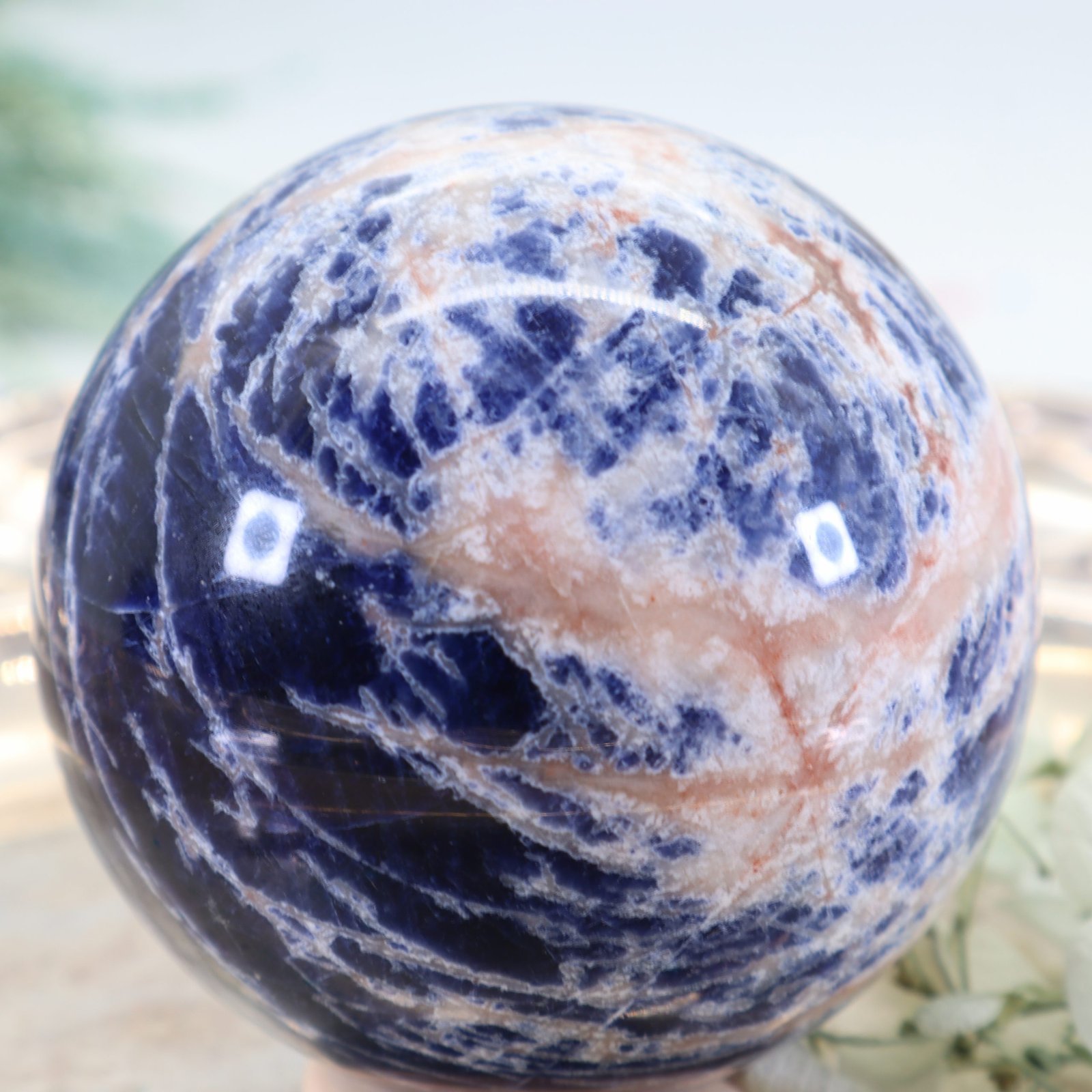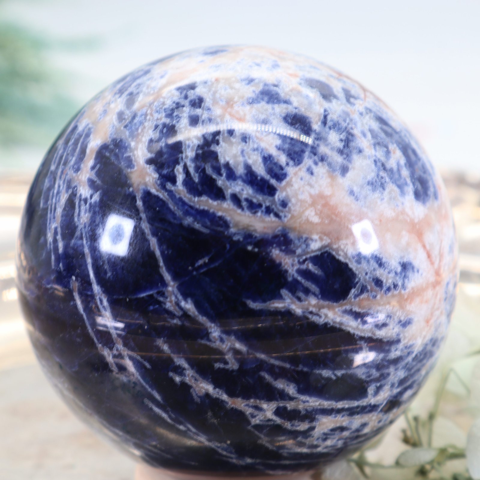 Erleben Sie die Perfektion des königsblauen Sodalits in Form einer hochglanzpolierten Edelsteinkugel – ein Kunstwerk, das Schönheit und Spiritualität in Ihr Leben bringt.