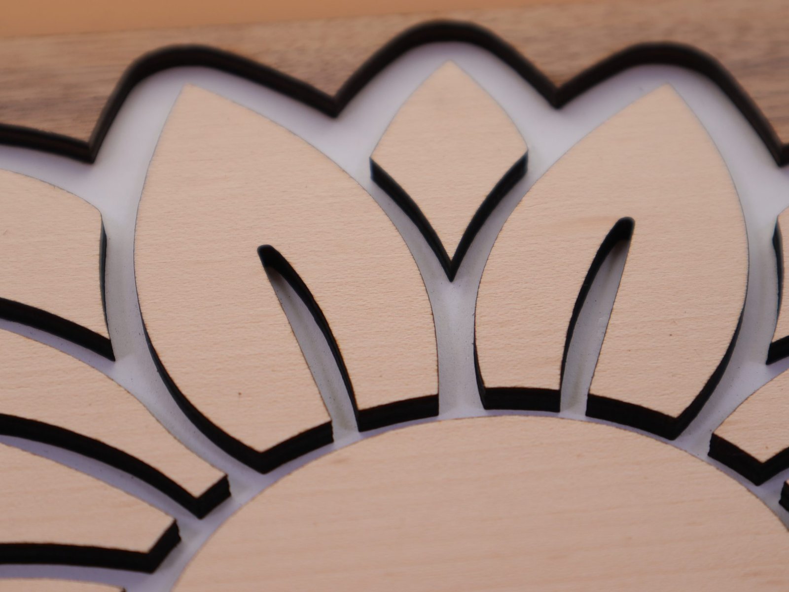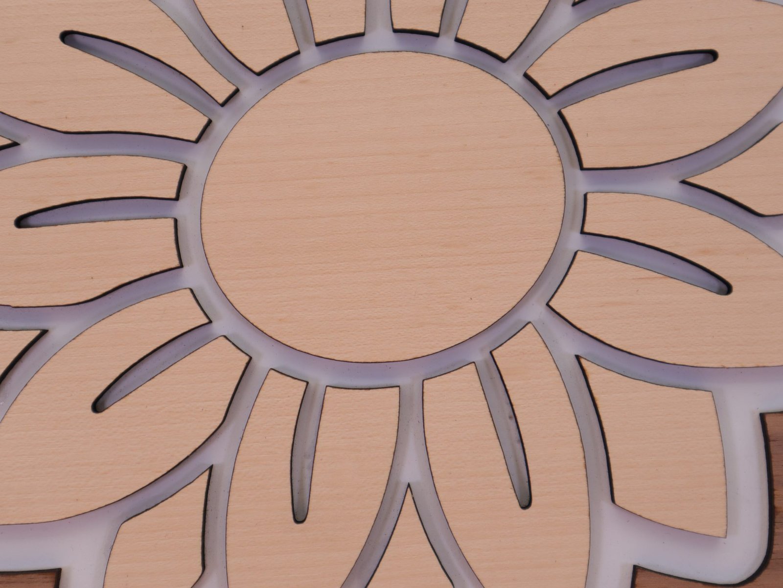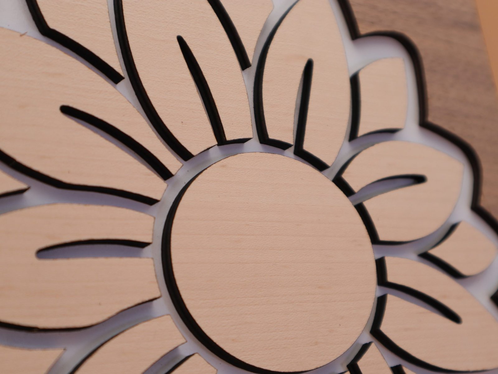 SONNENBLUME mit RATTAN Muster aus Nussbaum und Buche Sperrholz