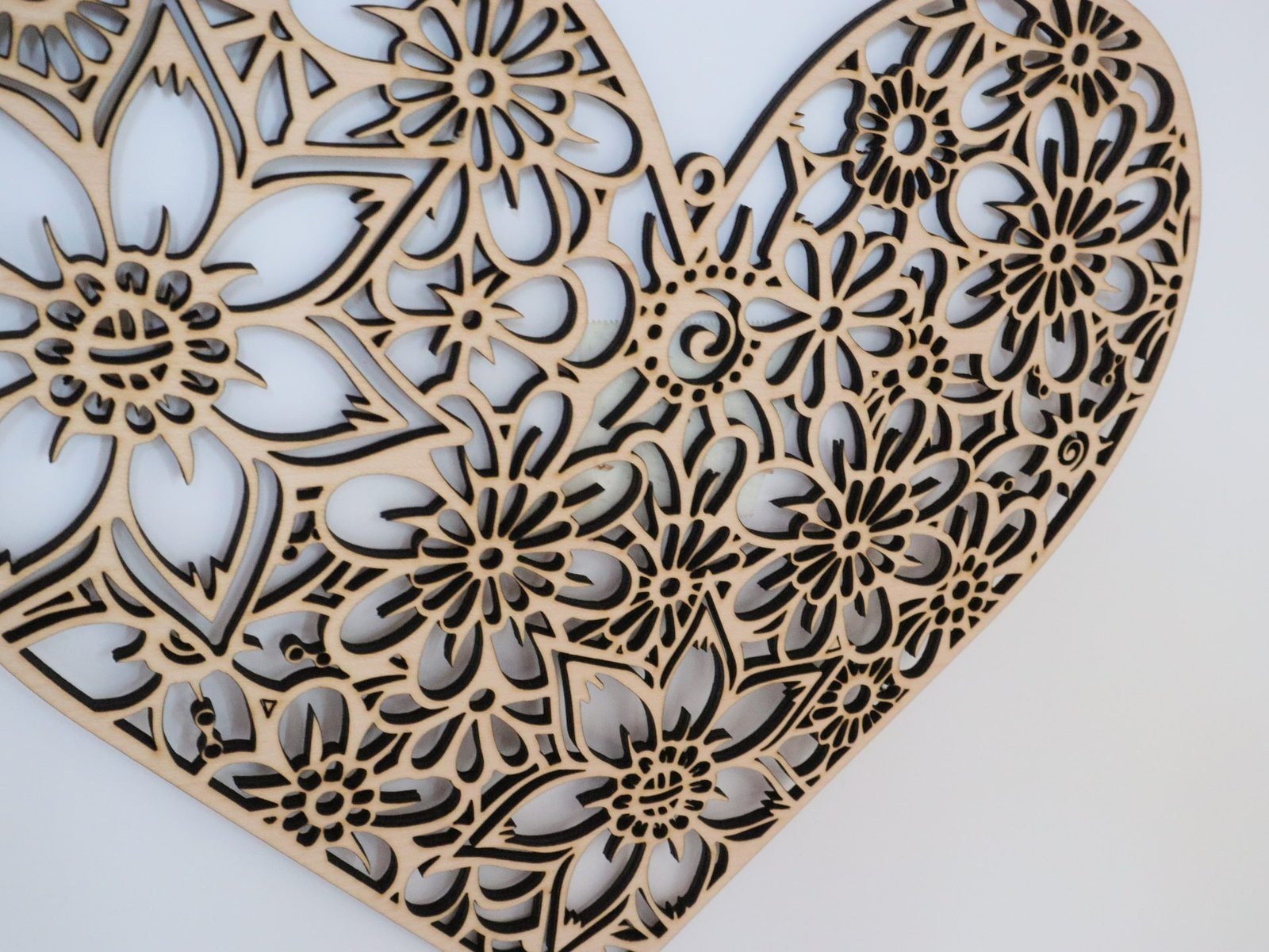Erwecken Sie Ihre Wände zum Leben mit dieser schönen Wanddeko und verleihen Sie Ihrem Zuhause einen Hauch von natürlicher Schönheit mit unserem exquisiten Holzherz mit Blumenornamenten!
